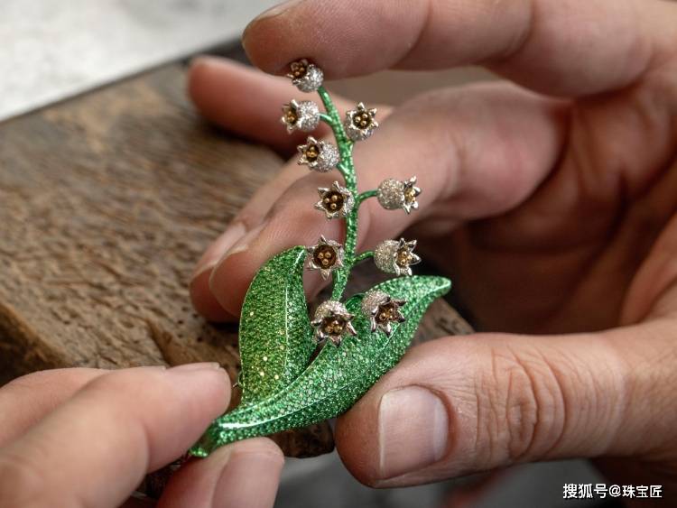 系列以 18K 金、钻石、Akoya 珍珠、祖母绿及沙弗莱石为主材质,搭配白色珍珠母贝与珐琅,还原铃兰纯净姿态。