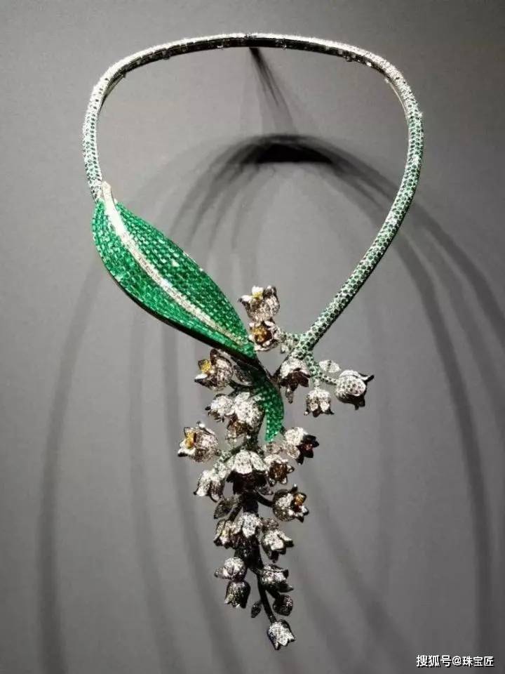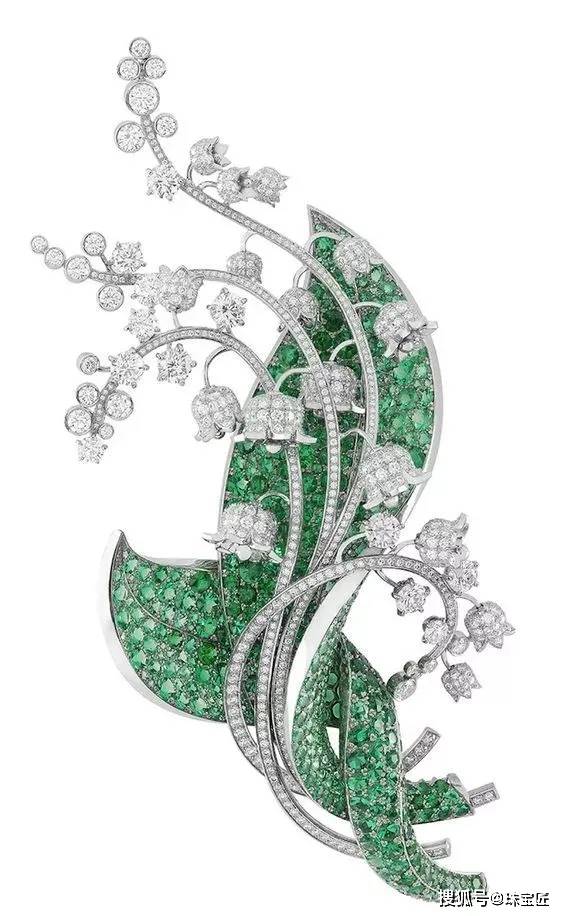 同时铃兰也是梵克雅宝的标志性幸运元素,品牌对铃兰的打造,堪称植物珠宝的典范:以隐秘式镶嵌祖母绿打造叶片,翠绿鲜亮,质感通透,如同春日新抽的嫩叶,铃兰花朵以钻石雕琢,小巧精致,呈下垂姿态,完美还原铃兰的生长形态,每一处细节都经过精雕细琢,清新自然。