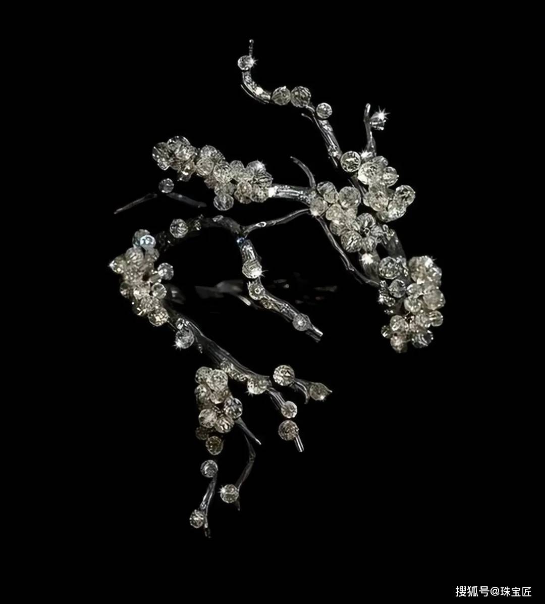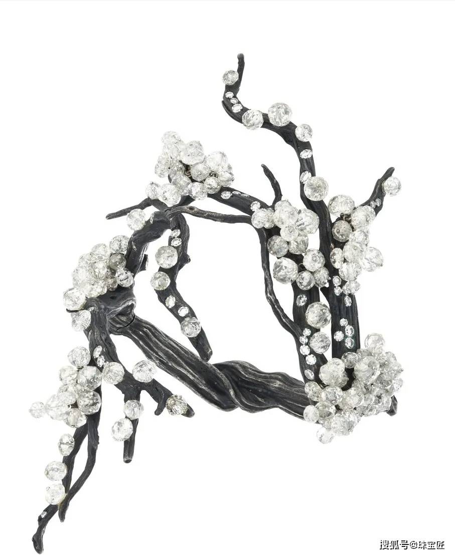 在他手中,梅花题材的珠宝被演绎得格外有生命力——比如2010年那枚惊艳拍场的枯枝钻石手镯,银质枝干上错落点缀着大小不一的钻石,乍看像是雪落梅枝的清冷瞬间。