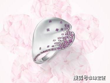 Les Pétales de Ginza银座落樱系列于2017-2018年面世,灵感源自东京银座飘落的樱吹雪,采用18K白金与粉红金,镶嵌粉色蓝宝石与钻石,花瓣轻盈灵动。