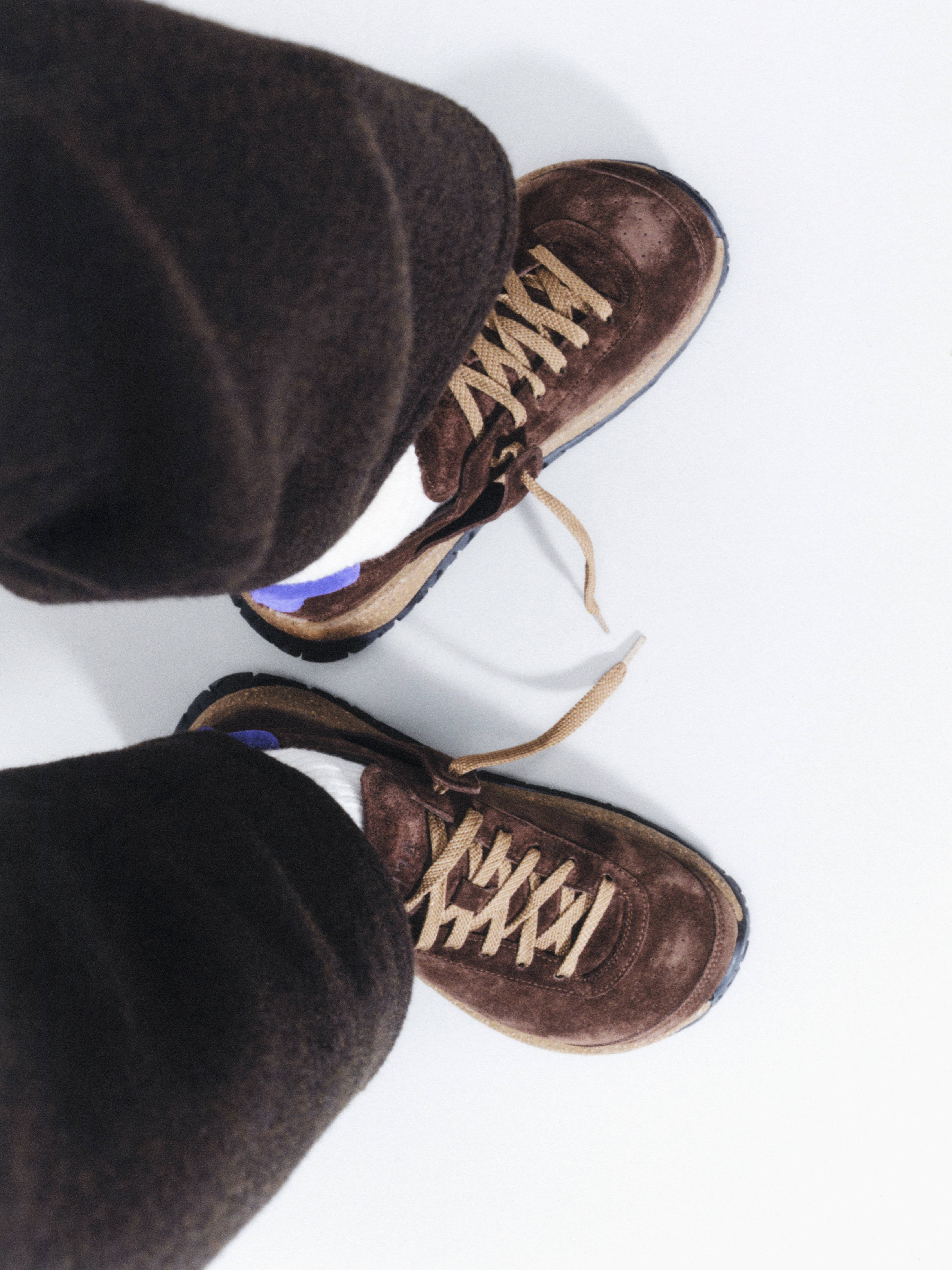 Stroedt 低帮系带鞋款首发采用皮革材质亮相,此次推出麂皮版本,并提供栗红色与沙色两种选择,赋予更具柔软触感的表达。