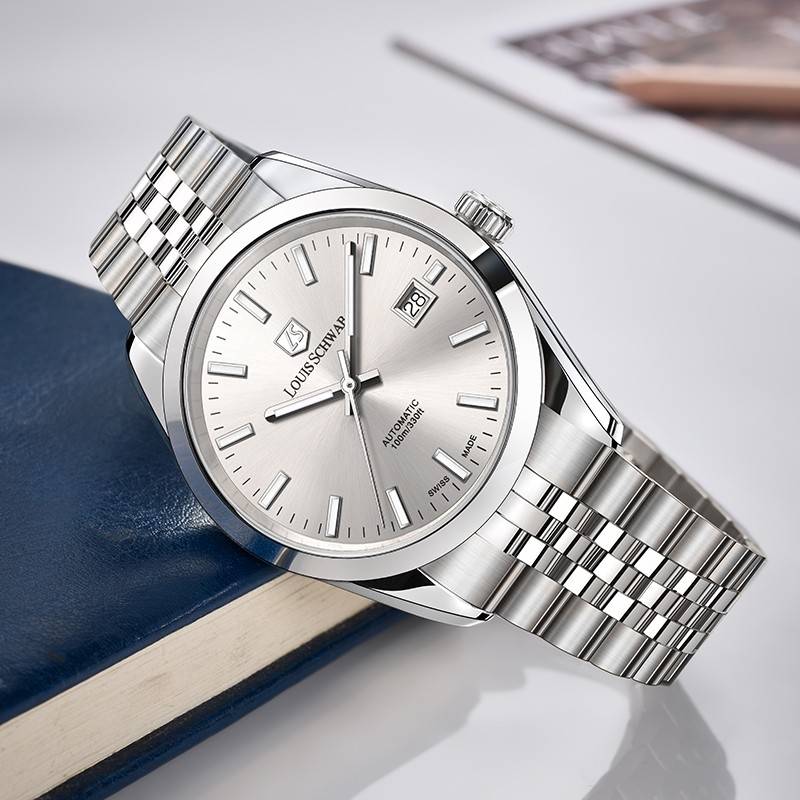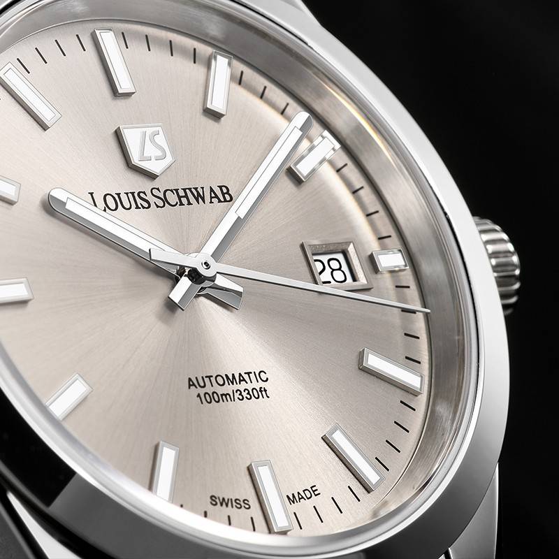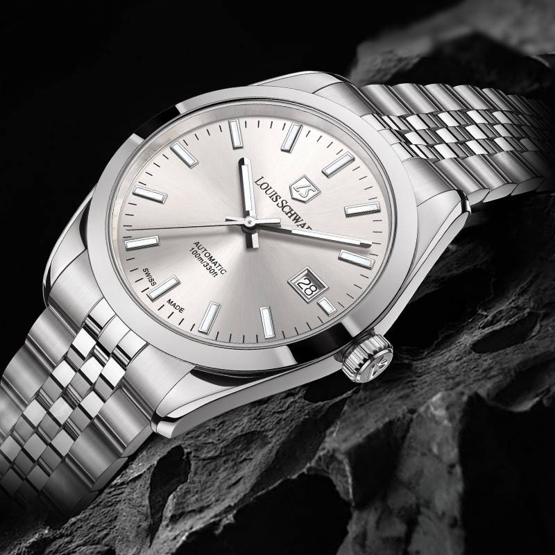 作为一枚源自瑞士的腕表,颜值与材质之外,核心性能始终是立身之本。路易施瓦布坚守“打造平民瑞士高品质腕表”的初心,为LS.33.00搭载了瑞士原产自动上链机芯,内置26颗宝石轴承,振频达28800次/小时,走时精度稳定在±5秒/天,远超同价位腕表的平均水平。41小时的动力储备,即便周末不佩戴,也无需频繁上链,完美适配现代职场人的生活节奏。