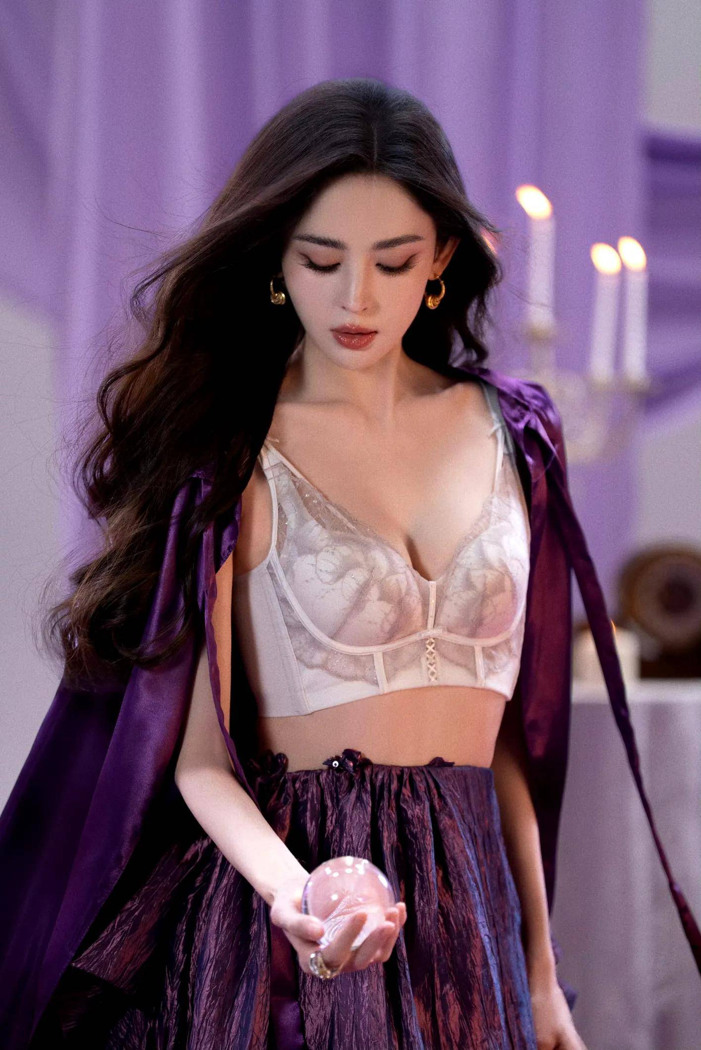 这是『古力娜扎』在新春开工之后,首次晒出为内衣品牌都市丽人拍摄的代言写真,这次代言内衣的造型主题围绕 “普拉提能量塑型” ,『古力娜扎』一身紫色丝绒斗篷,内衬白色蕾丝塑身紧身裹胸,整体的精致感扑面而来,而且紫色更烘托出神秘性感,