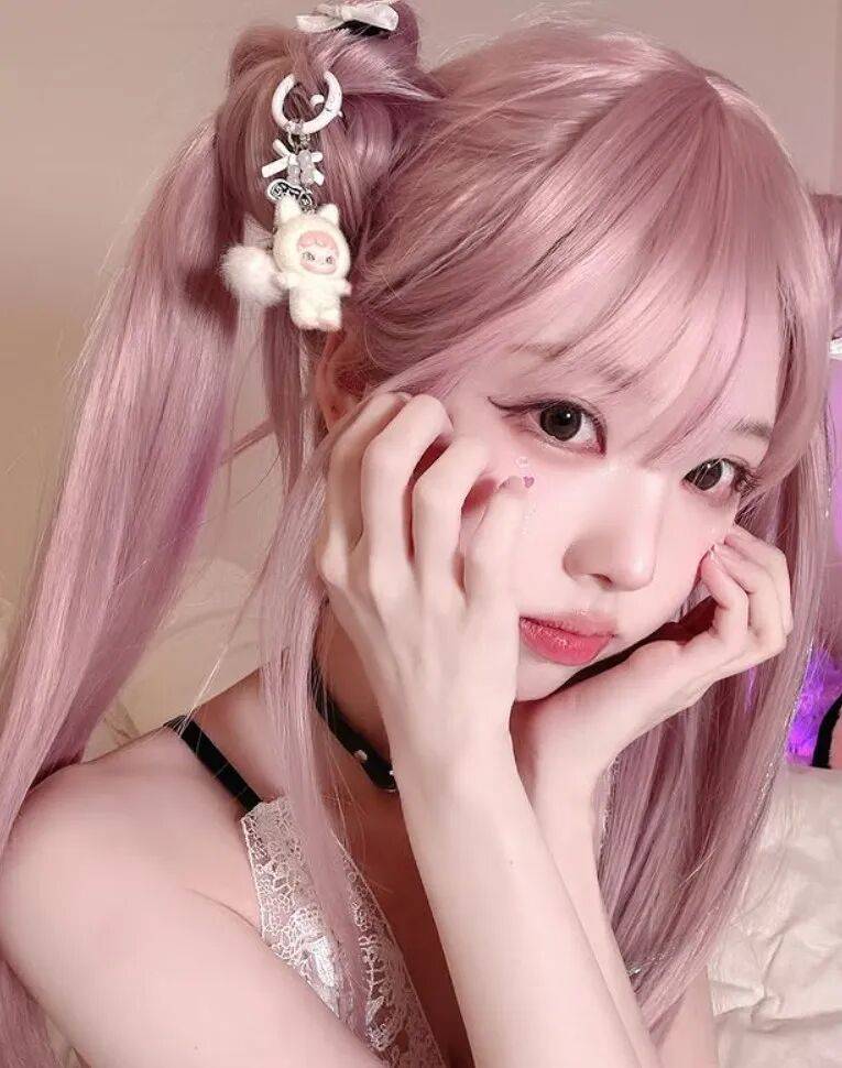 『妆容』走清透甜妹风,水光肌底妆打造通透质感,平直柔雾眉搭配淡粉色眼影,凸显无辜感。唇妆选择蜜桃色、草莓色镜面唇釉,打造嘟嘟唇效果;腮红以淡粉晕染苹果肌,像自带娇羞红晕,与甜美气质完美呼应,氛围感拉满。
