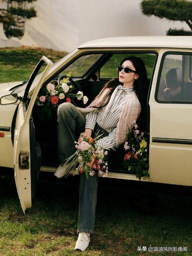 还有这幅黑超猫眼墨镜🕶️,更是氛围感神器。利落的猫眼线条完美修饰脸型,黑超的冷冽酷感,刚好中和了整套造型的柔媚甜感,一冷一甜的对冲,让热巴的浓颜优势被无限放大,不用刻意摆 pose,往车门边一靠,大『明星』️气场直接拉满,不刻意耍帅,却自带高光。还有腕间的细款 DIOR 手链,若隐若现的金属光泽,在抬手间悄悄透出精致感,不抢戏,却让整套造型的细节感直接拉满。