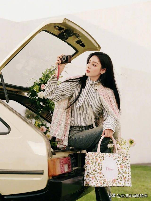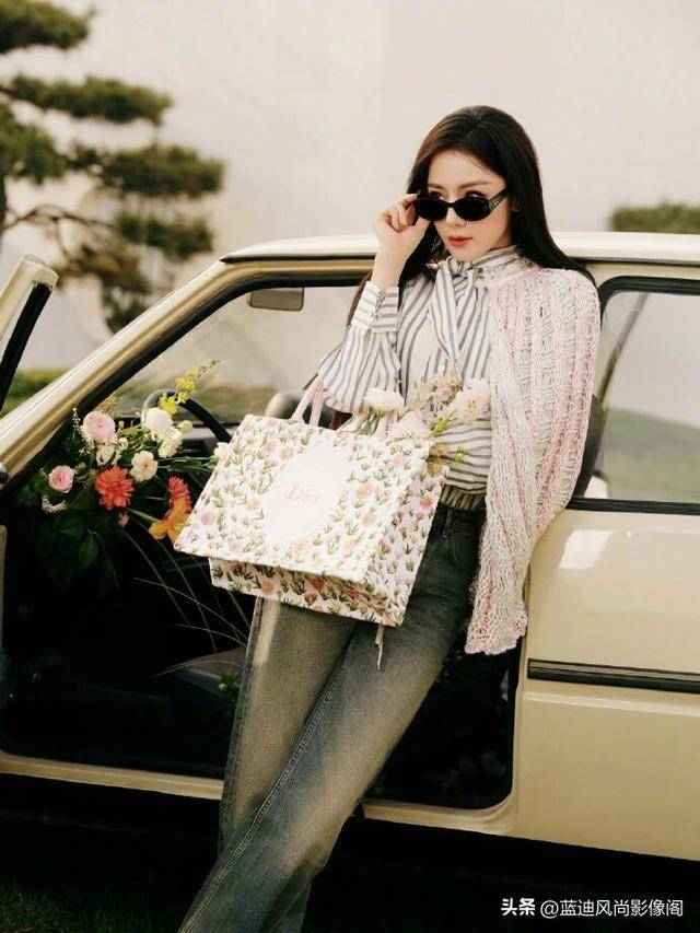 再聊配饰,这几样小单品,直接把整套造型的氛围感和品牌调性焊死了!首先是手里这只 DIOR 花卉印花『托特包』,绝对是整套造型的点睛之笔。经典的老花底纹,配上清新的春日花卉印花,和画面里的鲜花元素完美呼应,瞬间把整套造型的春日浪漫感拉满,大容量完全适配长途出行需求,低调的品牌标识不浮夸,却在细节处坐实了全球品牌大使的身份,和粉调开衫的柔媚感完美契合,处处见精致,却处处不刻意。