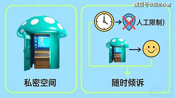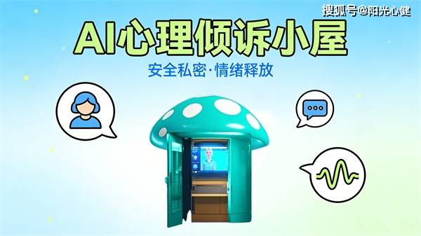 在心理健康服务中,情绪的及时释放与心理危机的早期干预是重要环节,而安全、私密的倾诉空间,能有效降低人们的心理防御,让负面情绪得到合理宣泄。阳光心健AI心理倾诉小屋以心理危机干预为核心设计理念,浅蓝绿色的蘑菇外观的造型,打造出独立、放松的专属心理倾诉空间,融合人工智能与心理学专业知识,成为心理咨询工作的专业延伸助手,为各类人群提供科学的情绪疏导与心理支持。