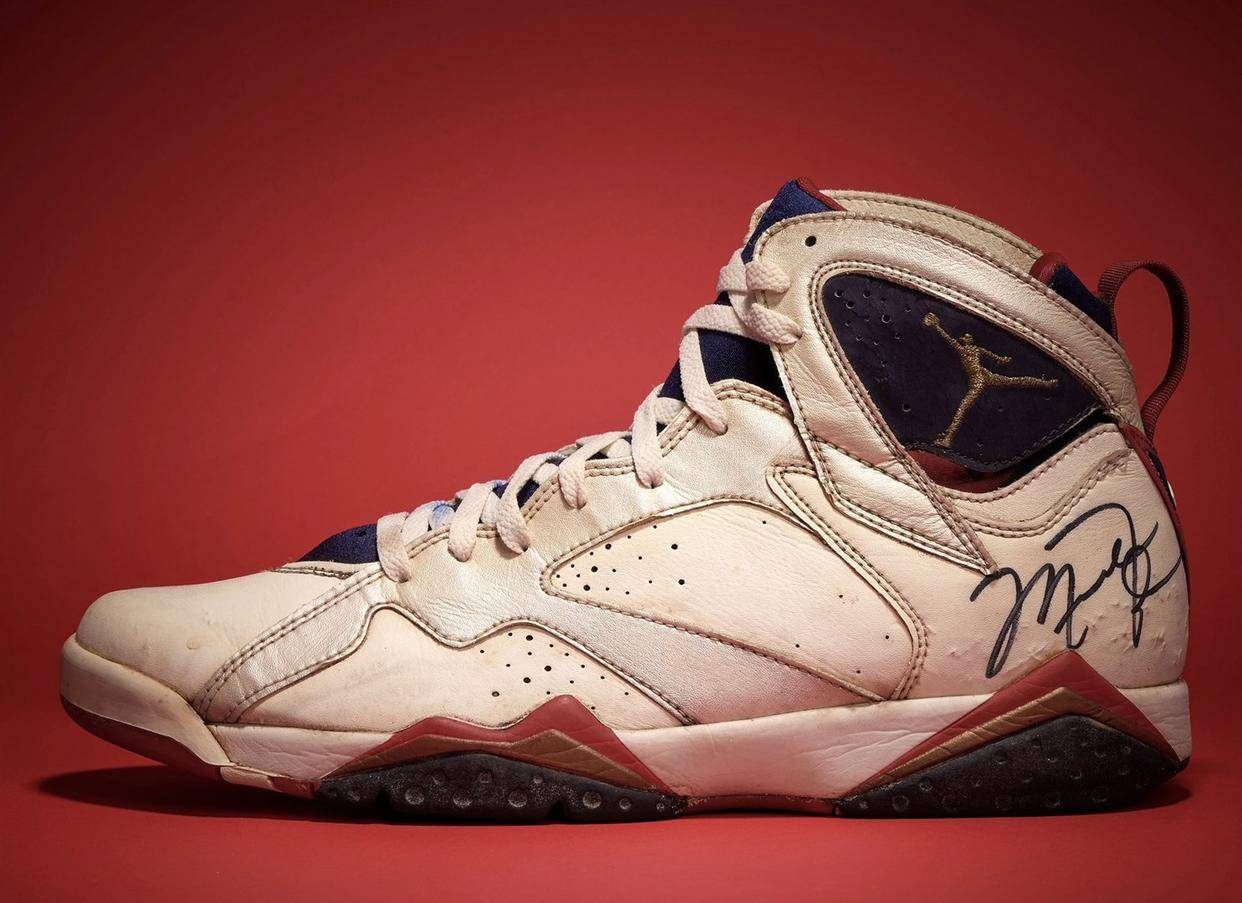 他走向自己的公牛队队友斯科蒂·皮蓬,递上了自己刚刚在决赛中穿过的这双Air Jordan 7“奥运”配色球鞋。 球鞋上还带着赛场的痕迹和汗水的气息。 对乔丹来说,这可能是对并肩作战的队友、尤其是在国际赛场上再次合作的伙伴的一份情谊象征。 皮蓬接过了这份礼物🎁。 在那个时候,这双鞋的价值更多地凝结在共同征战并夺冠的记忆里,它的物质价值尚未被天价拍卖的光环所笼罩。 皮蓬将其保存了下来,跨越了三十多年的时光。