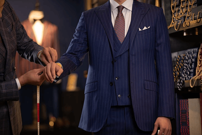 专业量体环节,由拥有数十年经验的驻店裁缝,为客户进行全方位的精准量体,采集数十项精准的净体尺寸数据,同时结合客户的身材特征、行走习惯与穿着偏好,进行个性化的调整,确保定制作品能够完美贴合客户的身材,实现极致的穿着舒适度。