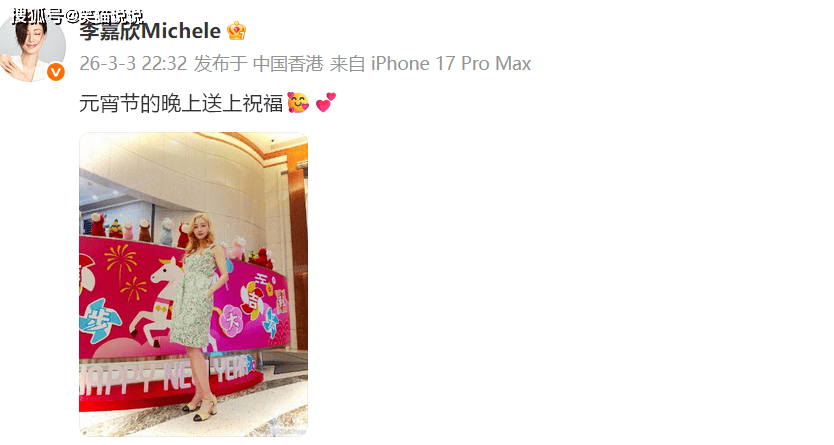 『李嘉欣』在自己的个人社交账号上晒出了她的最新照片,她配文道:“元宵节的晚上送上祝福。”在照片中可以看到,『李嘉欣』穿着白底绿色印花吊带束腰短裙,搭配黄色的系带粗跟凉鞋,看起来十分清爽又洋气。搭配她那亮眼的金黄色大波浪长卷发,衬托得气色很好,面色显得更加红润了,也多了几分活力感。