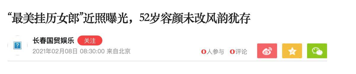 凤凰网,2021-02-08,“最美挂历女郎”近照曝光,52岁容颜未改风韵犹存