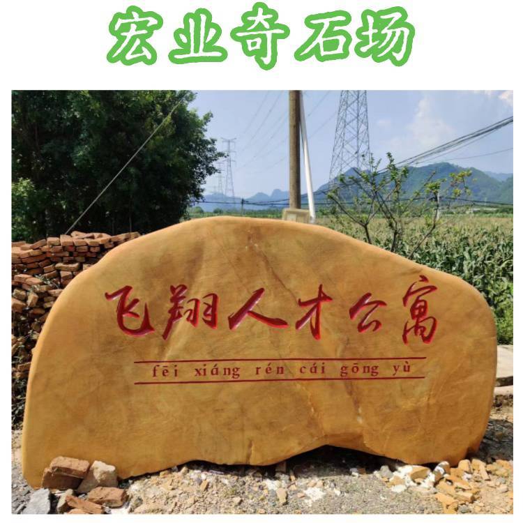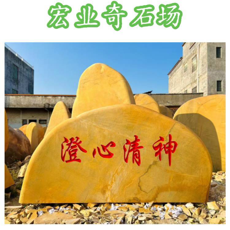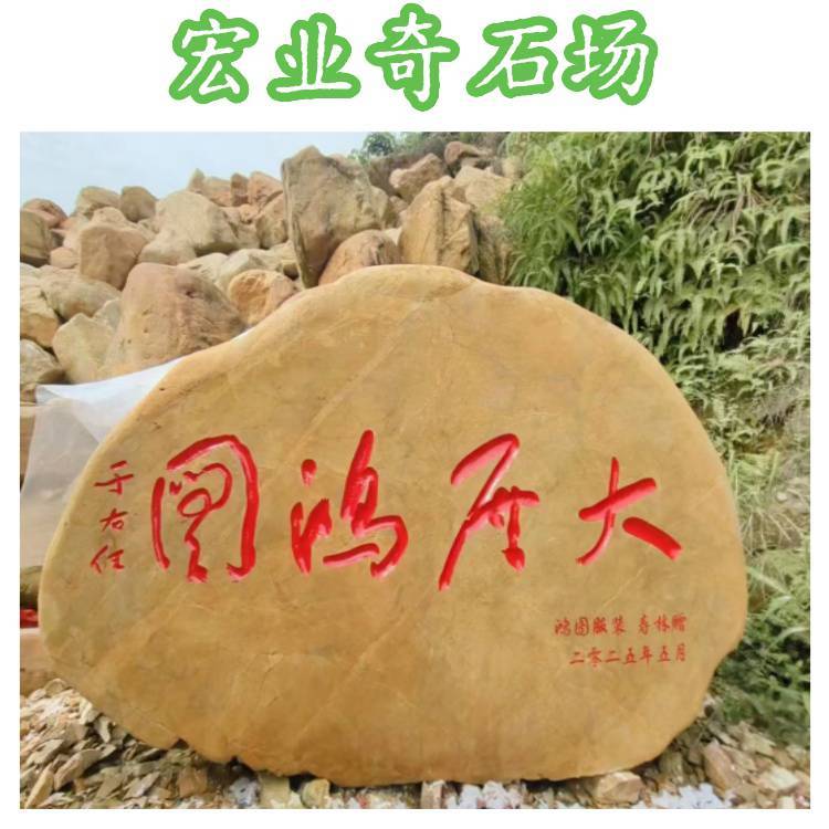 刻字石现货充足,精工雕刻,一站式服务。以自然原石为载体,以书法文字为灵魂,为企业,乡村,校园,景区,庭院打造专属文化景观石。主营黄蜡石刻字石,色泽金黄,石质坚硬,耐磨抗风化,户外摆放数十年不变。同时提供黑山石,泰山石,太湖石等多款刻字石材,满足不同风格需求。