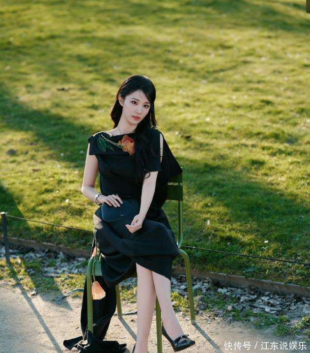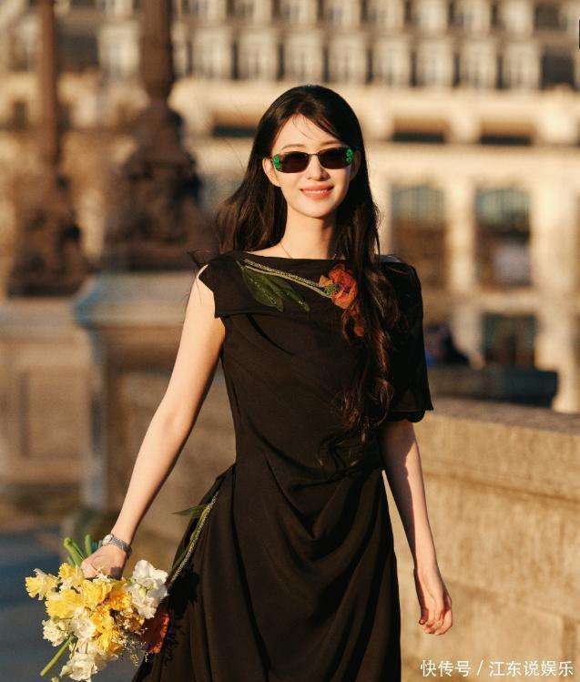 如果说机场的造型是她送给外界的时尚名片,那3月3日,她在秀场上穿上的那条黑色斜裁长裙👗,就是她敲开顶级『奢侈品』牌大门的钥匙。那条哑光黑裙上,橙红色的立体花饰像是黑夜里燃烧的火焰,而那露背设计所展现的光滑背部,在闪光灯下,泛着如珍珠般的光泽。她戴着四叶草🍀墨镜🕶️回眸的瞬间,外媒直接用复古油画里走出的东方大小姐来形容她。