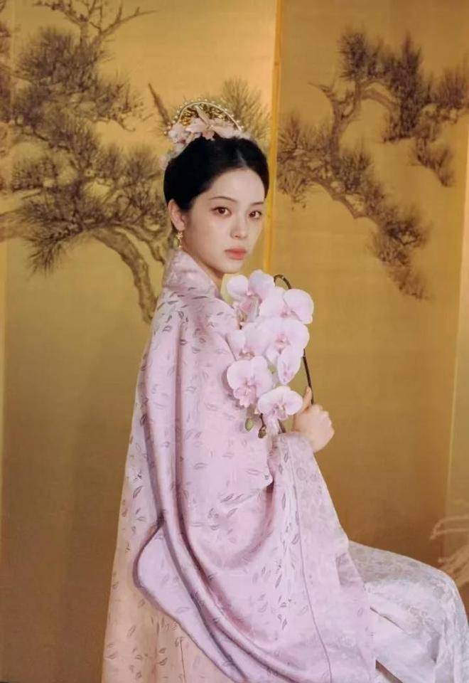 『欧阳娜娜』则走清新灵动路线,淡粉色齐胸襦裙搭配简单的编发,怀抱箜篌的她娇俏可爱,少女感直接拉满,仿佛一阵春风拂过观众心间。