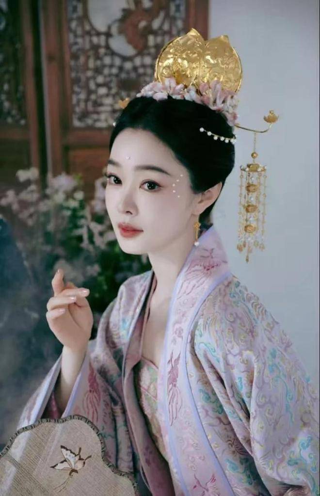 希林娜依高的淡蓝色汉服搭配利落短发与玛瑙发簪,展现了宋代女性♀️独立而昂扬的气质,飘逸中带着一丝坚韧。