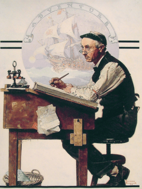 20世纪20年代,报纸📰上出现的白领标准搭配。(图/Norman Rockwell, Daydreaming Bookkeeper, 7 June 1924, The Saturday Evening Post, Wikimedia Commons)