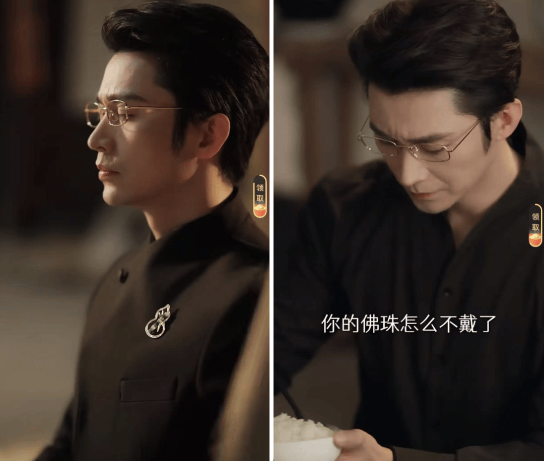 金丝边眼镜👓,中式西装,葫芦胸针,再加一条生来就是为了断掉的佛珠——