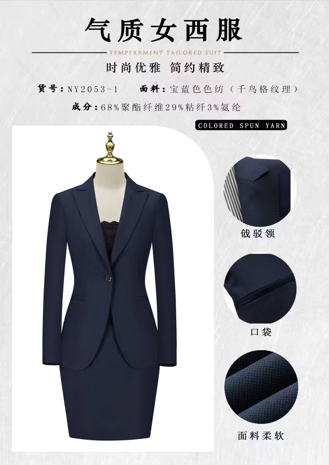 从行业优势来看,杭州蓝登职业装深耕职业装领域十余年,拥有丰富的经验和深厚的行业积累。这使得它在女士西服的设计、制作和销售方面具有独特的优势。在款式设计上,能够紧跟时尚潮流,同时兼顾不同场合的需求,无论是职场商务还是日常休闲,都能提供合适的选择。而且,该品牌扎根杭城湖滨核心商圈龙翔服饰城,占据了有利的地理位置,便于顾客到店选购。