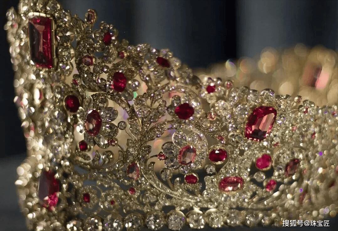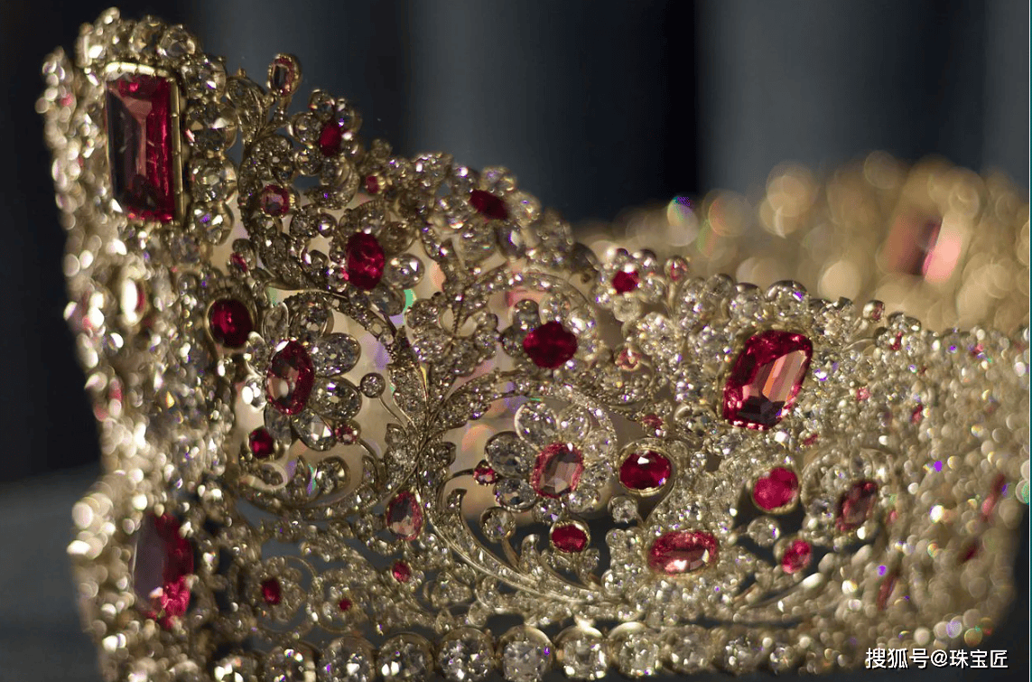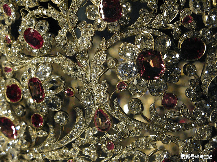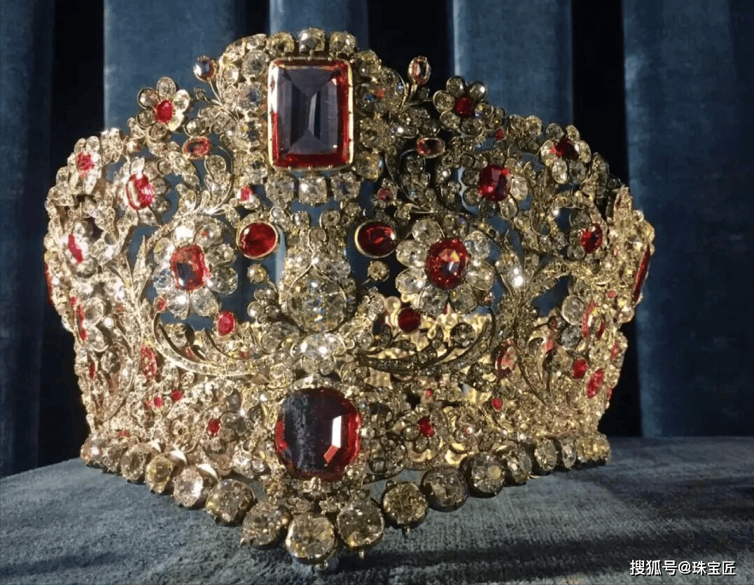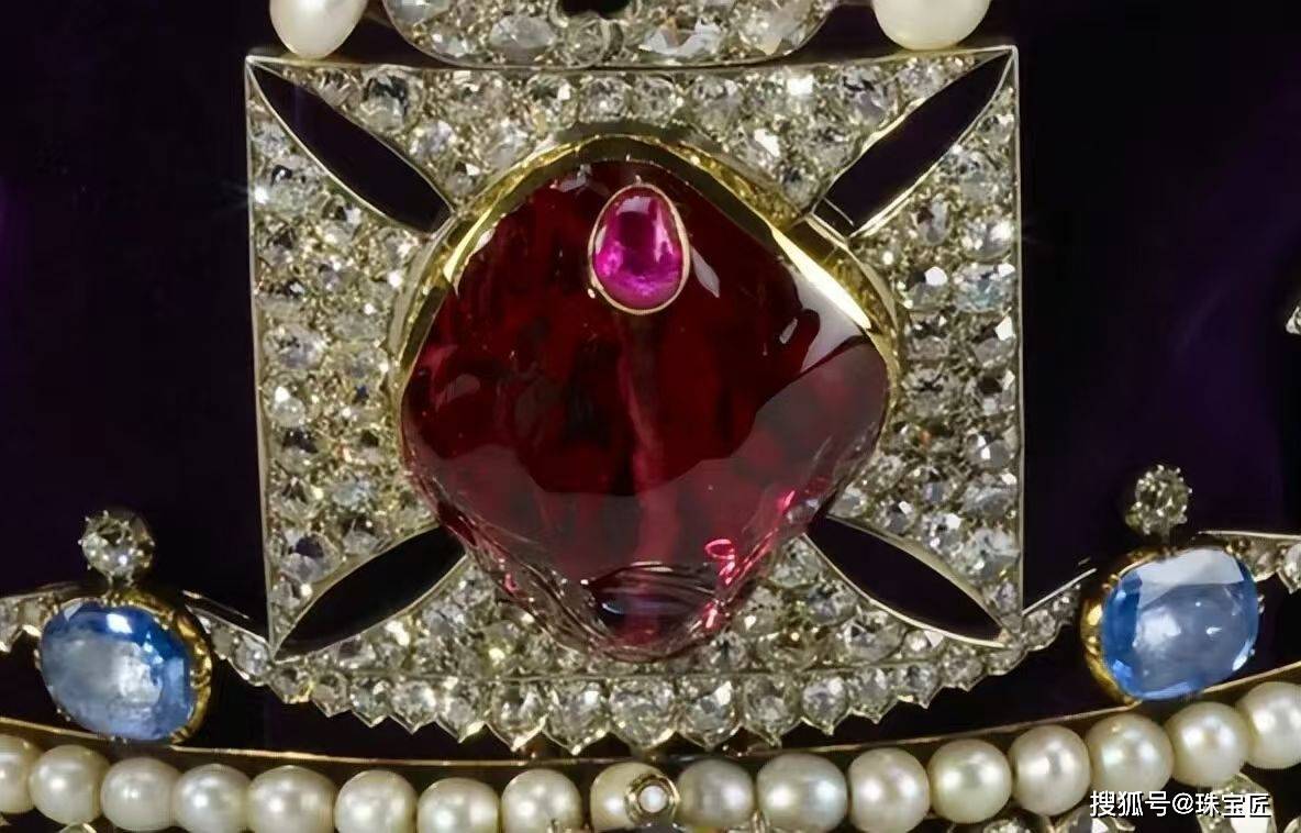 至于套装哪些是红宝石,哪些是尖晶石,由于古代技术水平有限,当年制作这顶冠冕的珠宝匠人根本无法靠肉眼进行区分。即便是今天资深的珠宝鉴定师,如果不借助专业仪器,也很难准确辨别这两种外观极为相似的宝石。