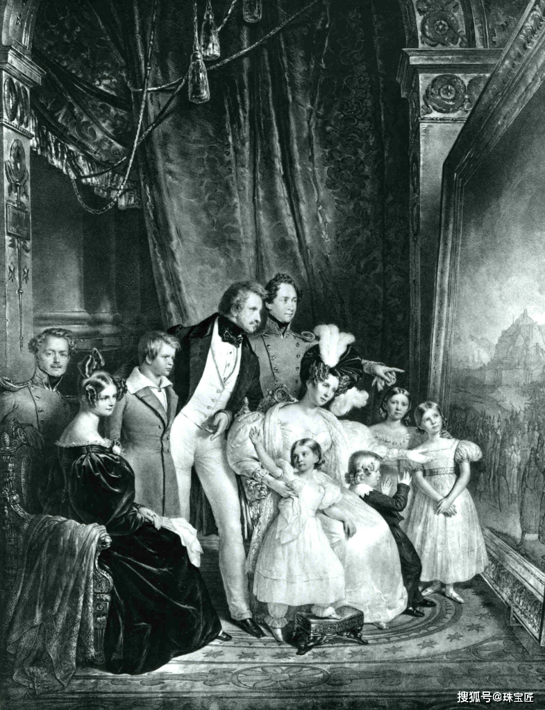 1830年左右,特蕾莎王后与家人在一起