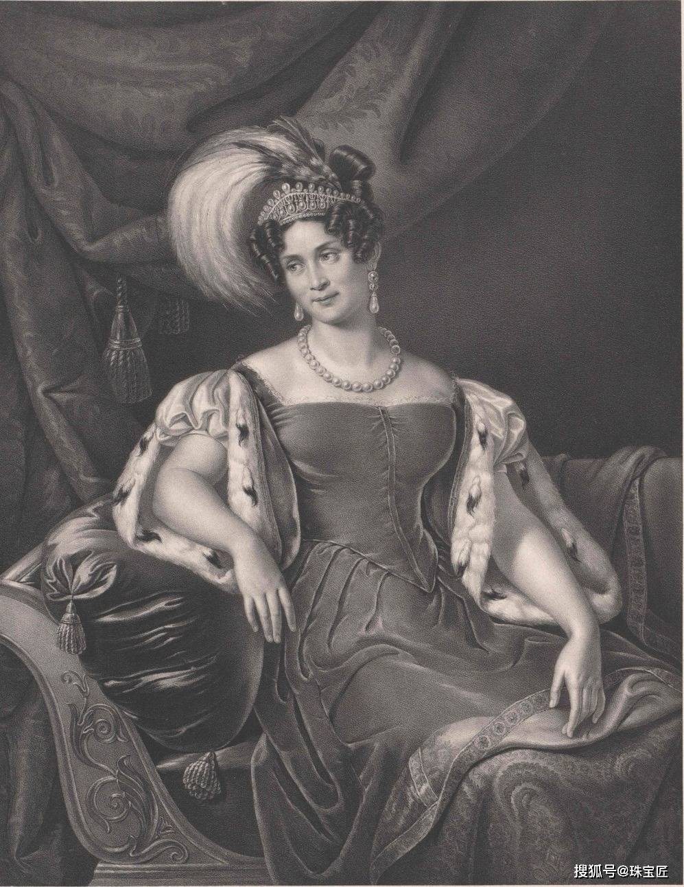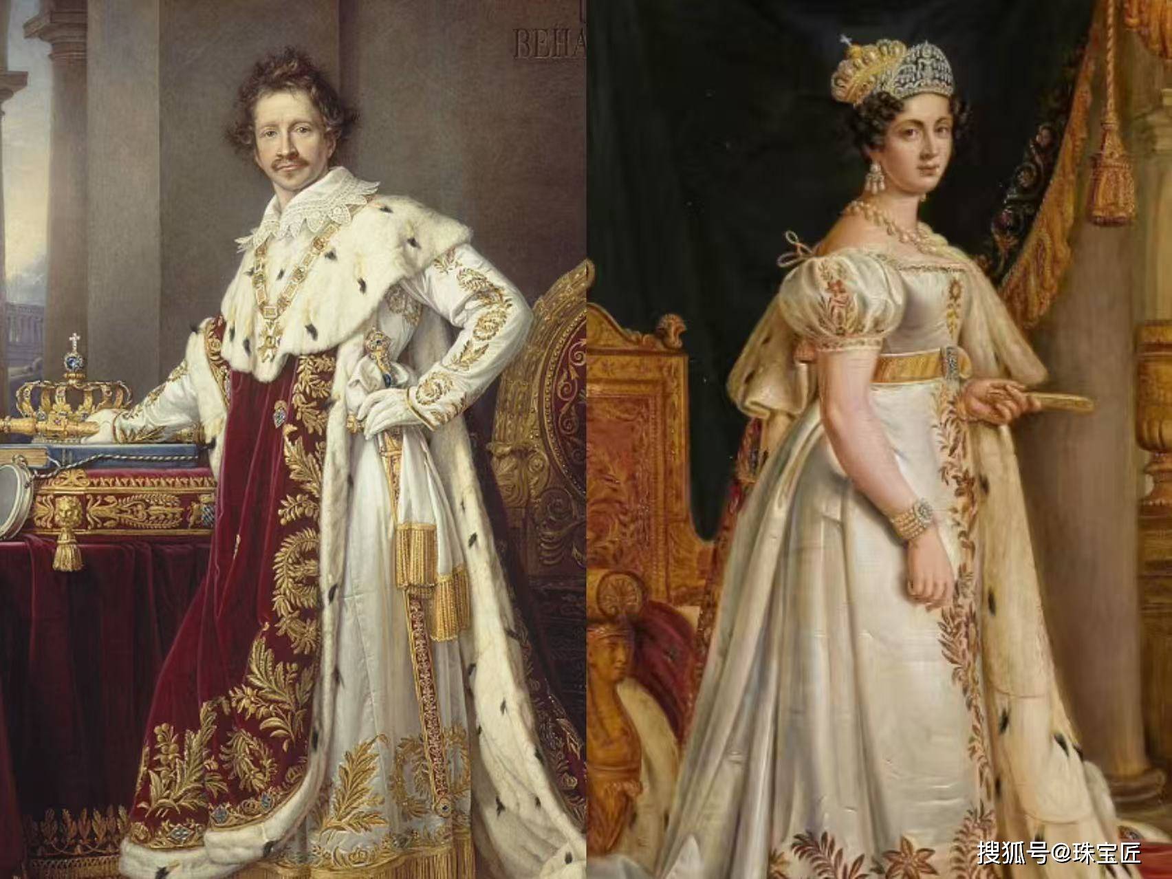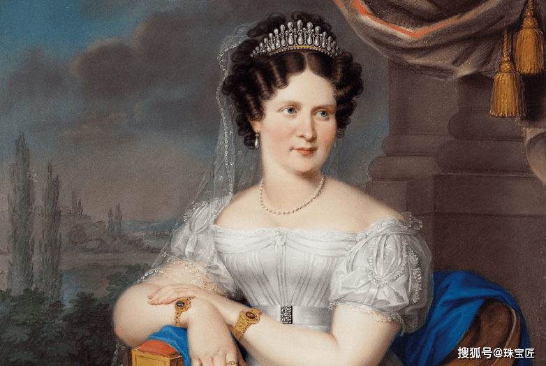除了这顶冠冕,配套的手镯、耳环、与项链,在设计风格上也是一脉相承,那份璀璨与厚重,足以让人感受到巴伐利亚王国的荣耀与财力。
