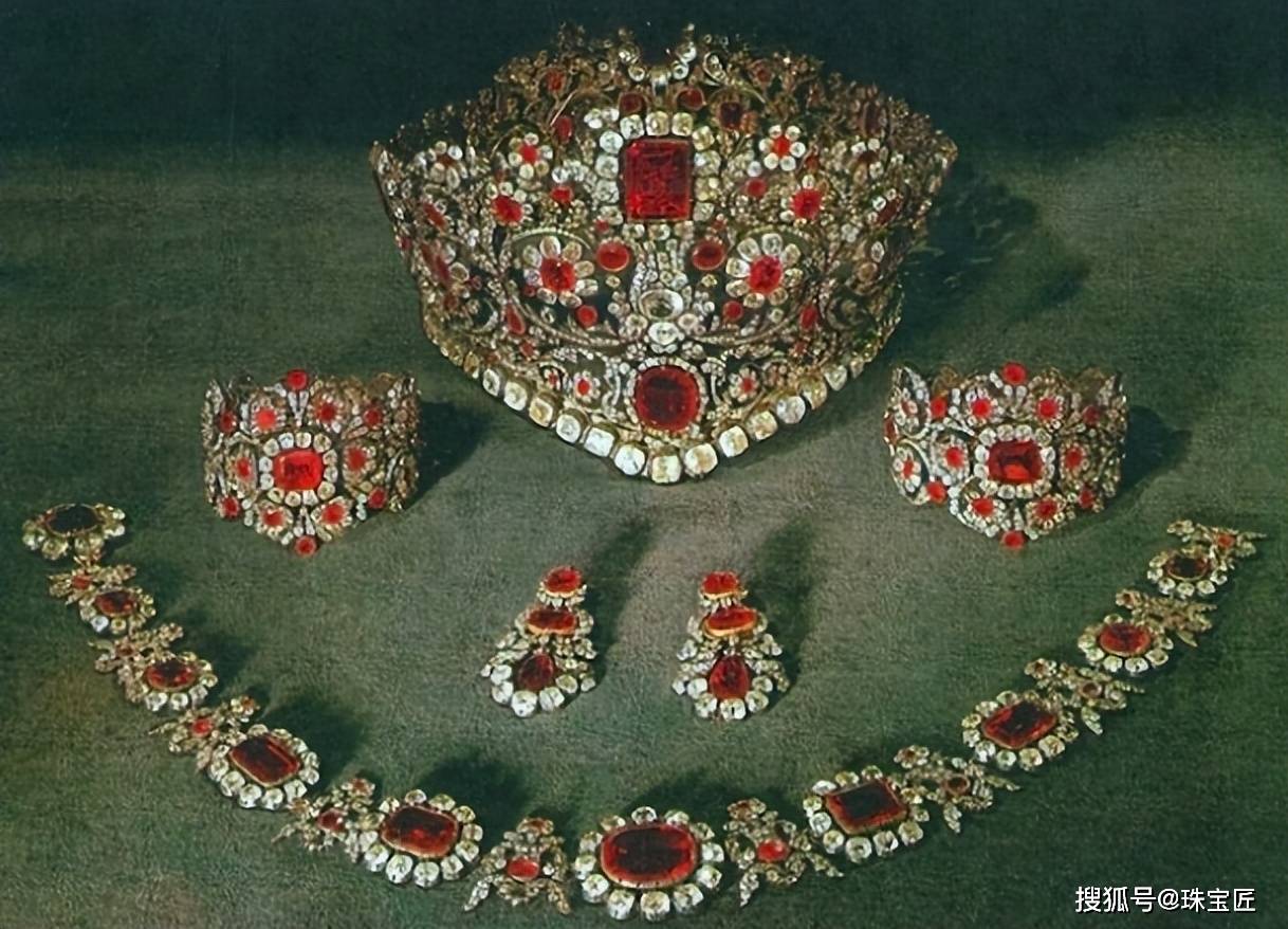 1830年,路德维希一世为嘉奖王后特蕾莎多年来的付出,同时也为了彰显巴伐利亚王国的实力与荣耀,委托慕尼黑宫廷珠宝商卡斯帕·里兰德打造了一套奢华的红宝石尖晶石套装,作为送给特蕾莎的礼物🎁。