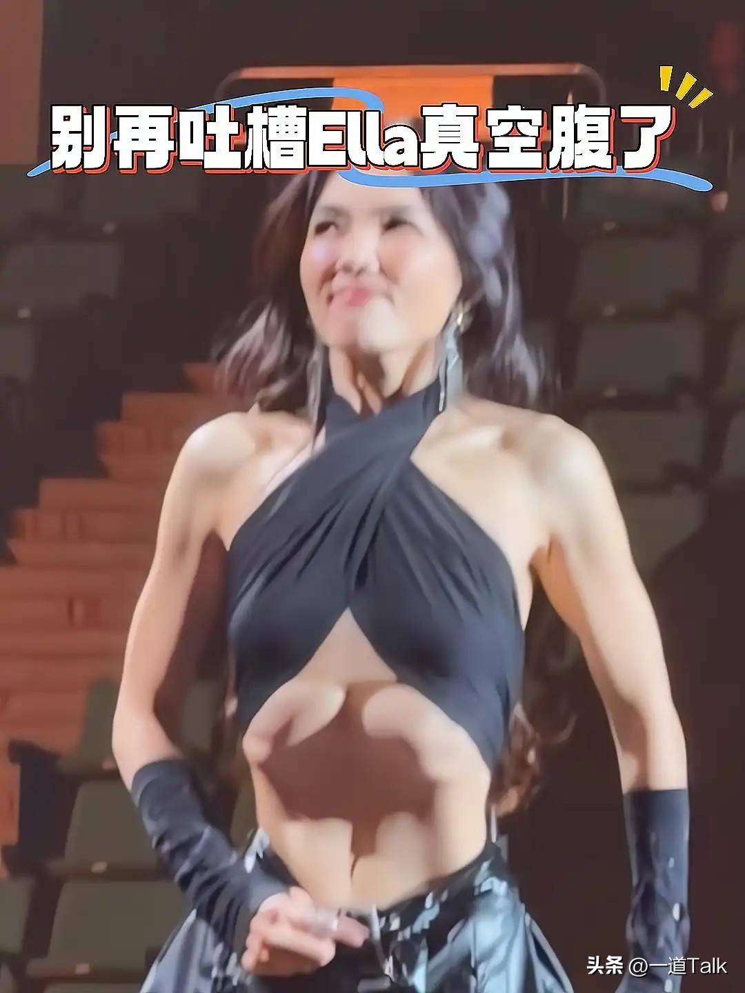 整场演唱会,Ella换了多套服装,每一套都比上一套更大胆,完全颠覆了大众对她的印象。最受争议的一套,上身是薄如蝉翼的挂脖露脐装,布料少得令人心惊,几乎只够勉强遮住关键部位;下身的短裤🩳更是短到离谱,长度甚至不如普通内裤,几乎贴在大腿根部。舞台上,她一边唱一边跳,短裤🩳便不断往上缩,好几次险些走光。