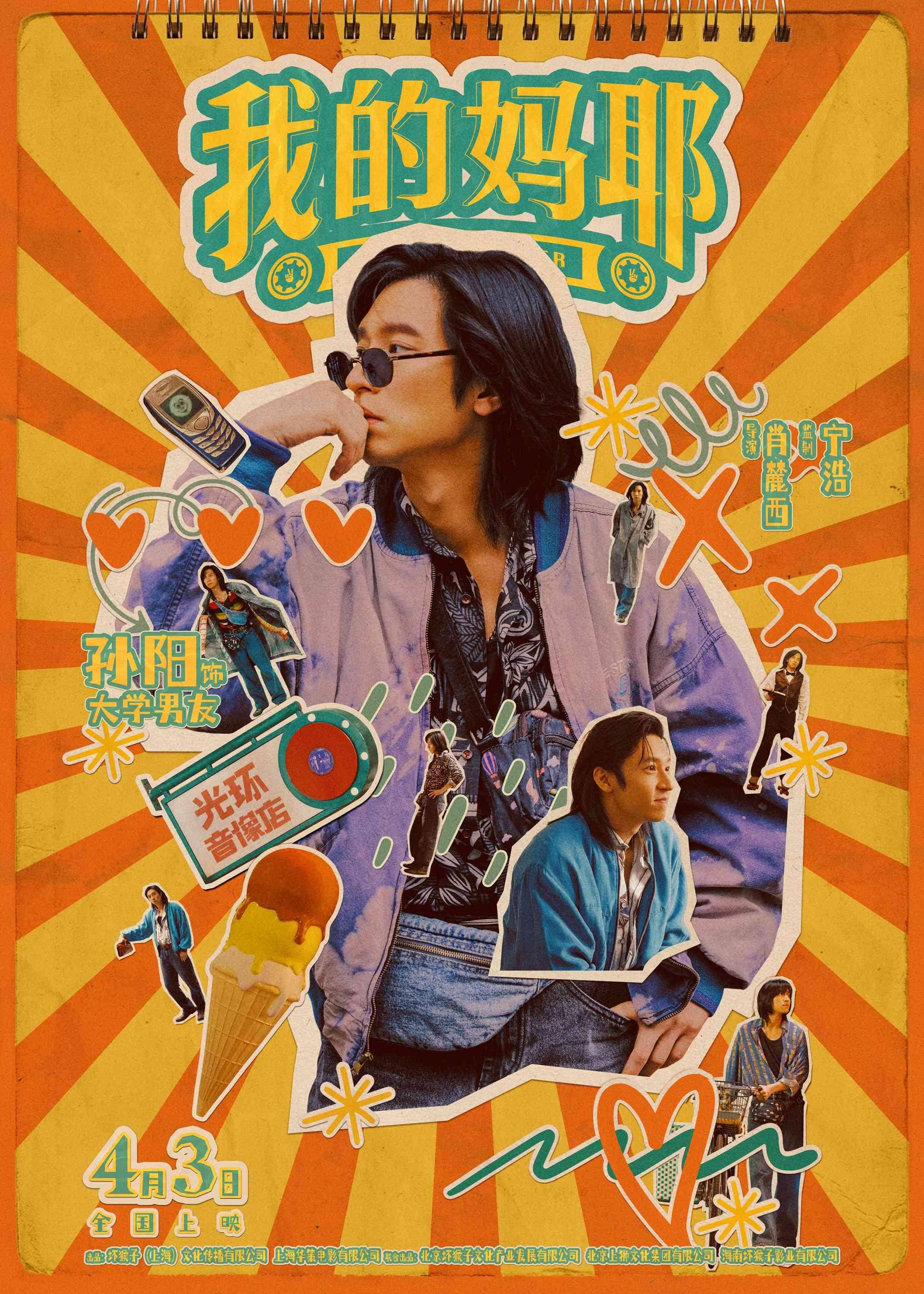 今日发布的角色海报采用复古风,以“人物贴纸”为核心元素,将每个角色的多样状态与多重造型“错落拼贴”,尽显影片“活力满满”的轻快底色。李东玉(『马思纯』 饰)气质张扬灵动,眼里自带光芒。从随性休闲的日常『穿搭』,到利落干练的职场造型,她热烈温暖、元气满格的人物轮廓被勾勒清晰。张永勋(白客 饰)自带“人夫感”,大大的比心姿势,直接把“黏人又宠妻”的人设焊在身上。张十一(黄明昊 饰)摸着头,一脸难以置信的神情,似乎“妈妈的瓜”并不简单。沉稳深情的大学男友(『孙阳』 饰),眉眼间满是温柔内敛;青春洋溢的高中学长(梁靖康 饰),少年感十足。两位风格迥异的高颜值帅哥,将与东玉谱写怎样的青春故事呢,让人期待。好闺蜜王彩霞(嵇嘉禾 饰)以浓妆造型亮相,让人一眼就被逗笑。发小刘皮孩(王天放 饰)自恋耍酷,搭配俏皮的小动作,反差感十足。这对个性鲜明的喜人组合,相信会为影片带来不少幽默笑料。除了立体的人物造型外,海报中各种元素设计也是细节满满。光环音像店招牌、花式热水壶、旧收音机、磁带、风筝等千禧年代老物件贯穿海报,每一处都带着时光滤镜,瞬间将观众拉回经典年代,唤醒被岁月珍藏的温暖回忆。