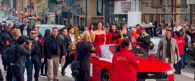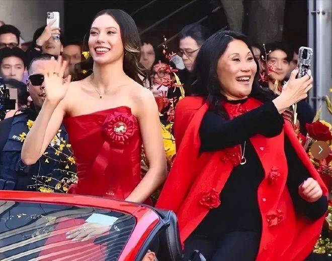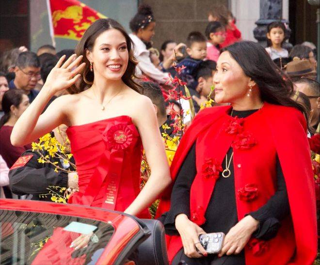 最近,旧金山的唐人街异常热闹,迎来了一年一度的中国新年花车巡游。整个街区都弥漫着喜庆的气氛,大家的目光都集中在了这一场盛大的庆典上。而在这其中,最吸引眼球的莫过于谷爱凌和她的母亲谷燕。她们穿着一身红裙,坐在红色的敞篷花车上,瞬间成为了全场的焦点,吸引了无数人的目光。