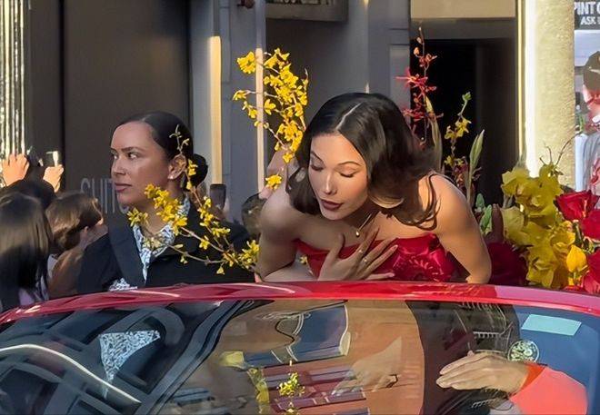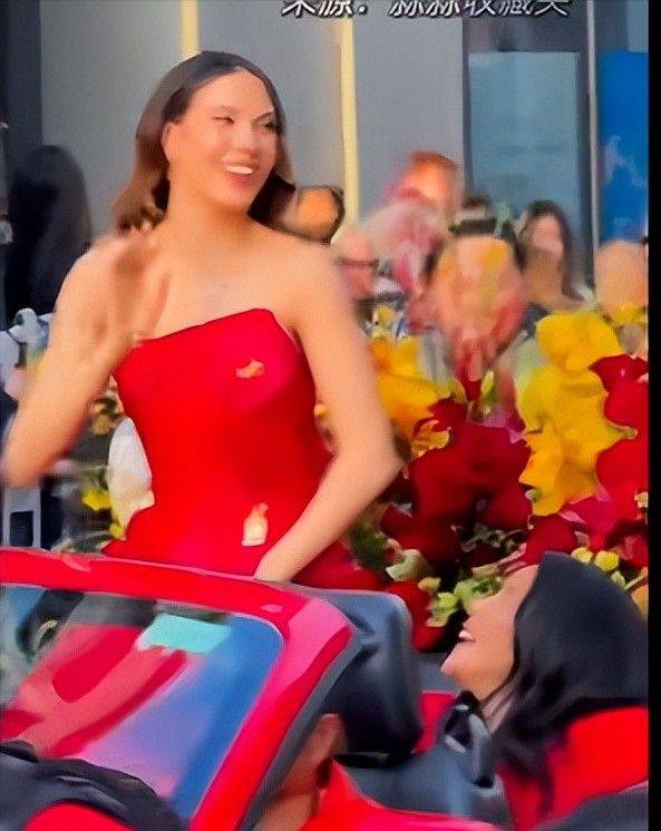 当天下午,谷爱凌穿着一件红色的抹胸裙站在敞篷车上,金色的『长发』在阳光下闪闪发亮。她笑容满面,挥手向两侧的观众打招呼,镜头感十足,毫不怯场。身旁的谷燕则一身红黑搭配,气场十足,举手投足间充满了对女儿的骄傲和疼爱。有现场目击者表示,虽然当天天气稍微有点凉,谷爱凌依然站立在车上,毫不松懈地和观众互动,完全展现了她放松自如的状态。