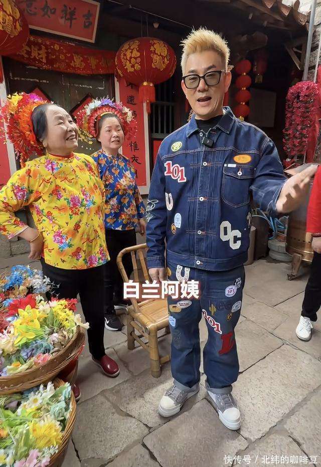 这次在泉州体验簪花,显然也是为他的演唱会做预热。作为一位老牌歌手,任贤齐的演唱会注定会有大量的粉丝支持。而这身牛仔套装和厚底帆布鞋,虽然有点邋遢,但如果换上一双轻便的鞋子,可能就不至于让他的身高显得那么压低了。