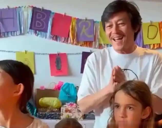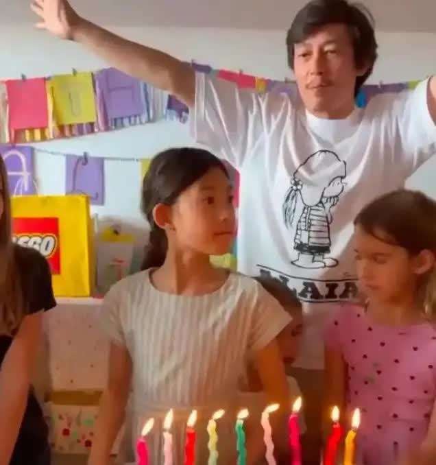 这种外貌上的变化,和他生活重心的改变息息相关。2017年,Alaia的出生让『陈冠希』感慨自己突然就老了。他将这一变化归结为育儿的自然损耗,但却心甘情愿。『陈冠希』的『社交媒体』几乎成了Alaia成长的日记,记录下了从她学步到背书包的每一个瞬间。网上有网友发现,他手机里保存了超过2000张女儿的照片。为了陪女儿滑雪🎿,他可以推掉商业演出;日常的接送、讲睡前故事等琐事,他总是亲力亲为。那个曾经用手指示向狗仔的叛逆少年,如今却会耐心地半跪在地上,把自己变成人肉板凳,或者『打扮』成海绵🧽宝宝,背着女儿玩耍。Alaia的9岁生日派对,完全不符合外界对『明星』️家庭奢华的想象。没有包下豪华酒店,也没有定制的礼服与舞台灯光。派对就设在家中,墙上挂着手写的Happy Birthday字母彩带。桌面上摆放着二三十个礼物🎁盒,颜色各异,看上去像是亲朋好友各自挑选的心意,而非统一采购的套装。生日蛋糕是Alaia最喜欢的简约粉色多层蛋糕。『陈冠希』拿着手机在旁边拍摄,秦舒培则穿着白衬衫,温柔地递给女儿切好的蛋糕,顺手帮她理了理额前的碎发。