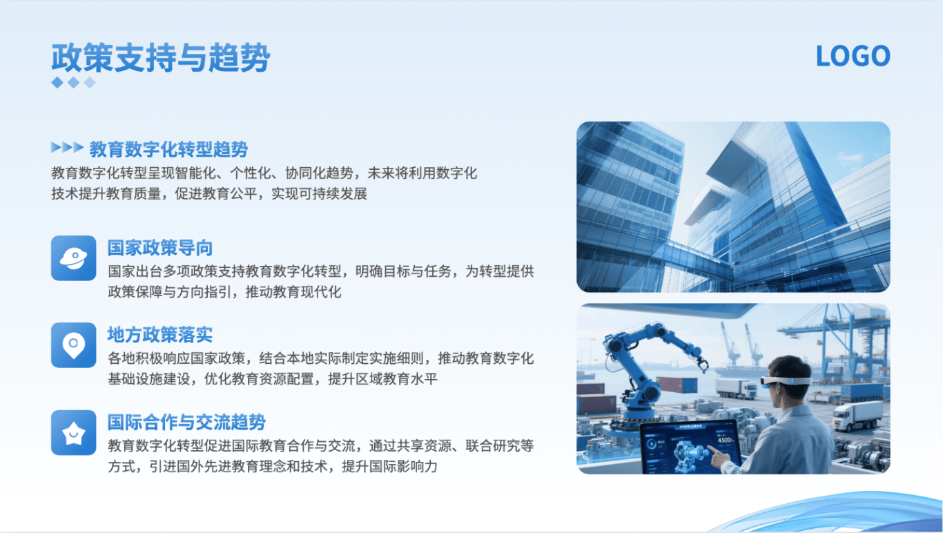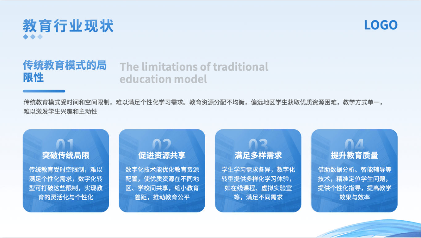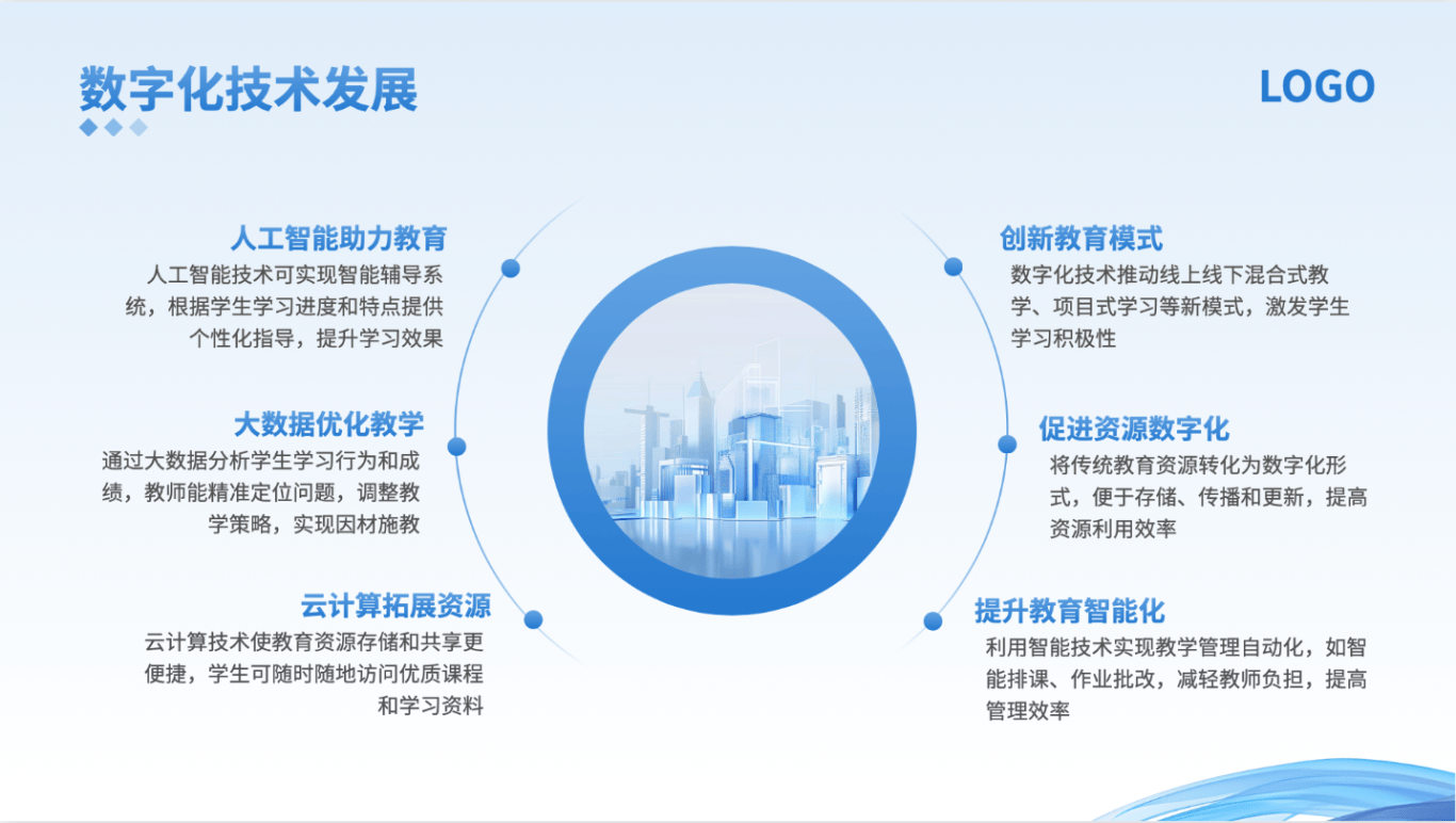 这组简约商务风PPT模版,以淡蓝渐变为主,搭配流畅的科技感线条,助力商务风简约免费PPT模板/PPT分享传递出教育创新的未来感,让专业内容更易被接受。