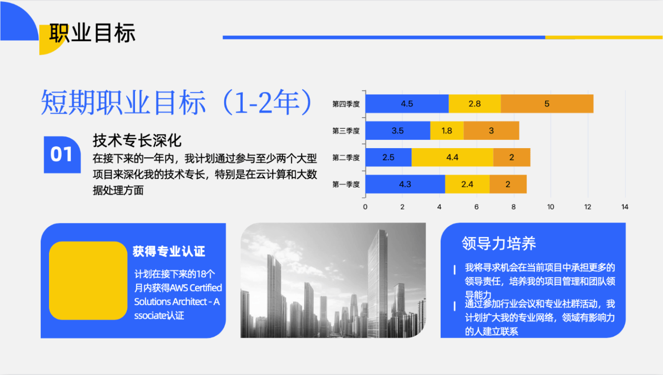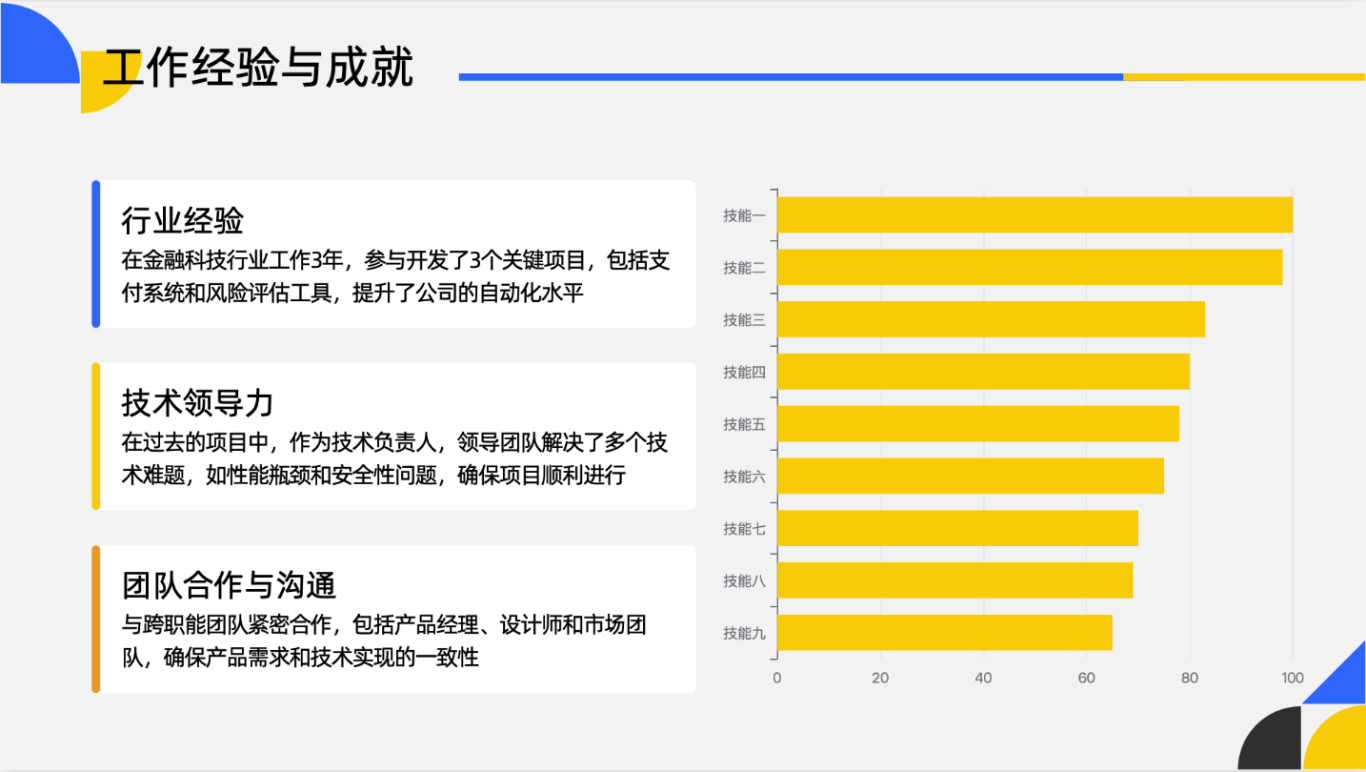 这组简约商务风PPT模版,采用蓝黄撞色与几何图形设计,让商务风简约免费PPT模板/PPT分享充满现代感与活力,助力每一次自我展示都充满吸引力。