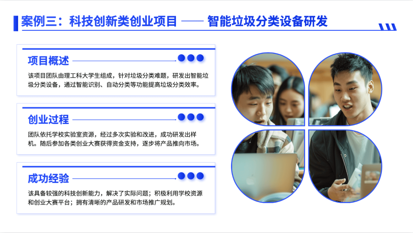 这组简约商务风PPT模版,以活力蓝白为主,搭配青春感的学生形象,弱化了商务风简约免费PPT模板/PPT分享的严肃感,让知识表达更有温度。