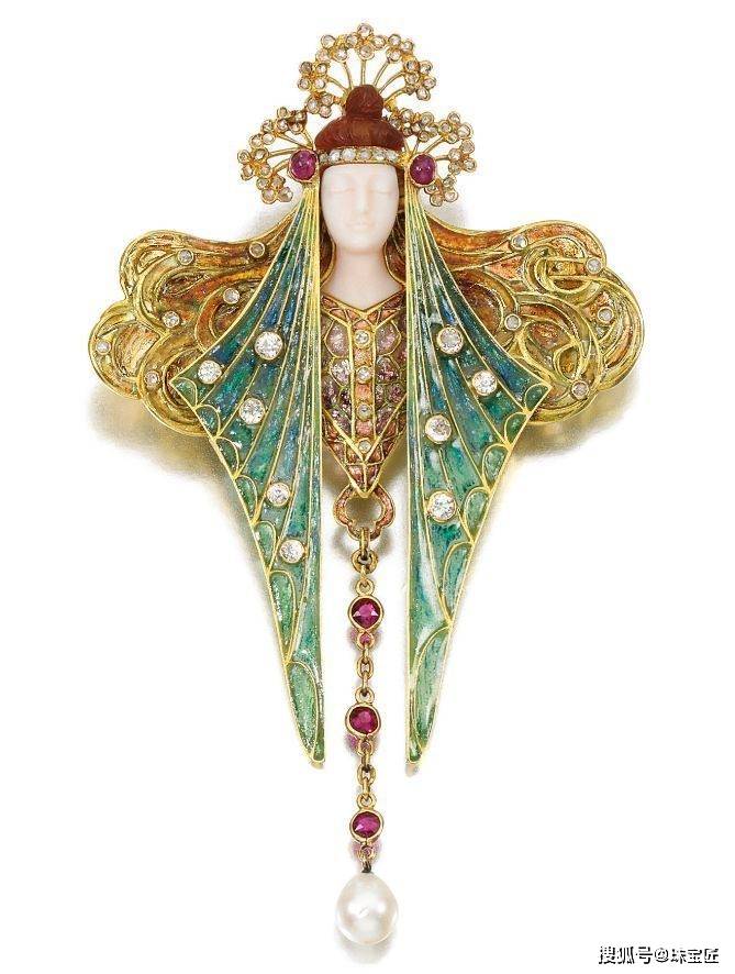 更难得的是,阿尔方斯极具前瞻性,他的后期作品已隐隐预示着新艺术运动的趋势,尤其将女性♀️形象重新引入珠宝设计,在当时被视为“异端”,却为后来乔治的创作埋下了伏笔。