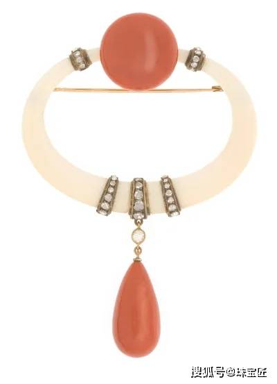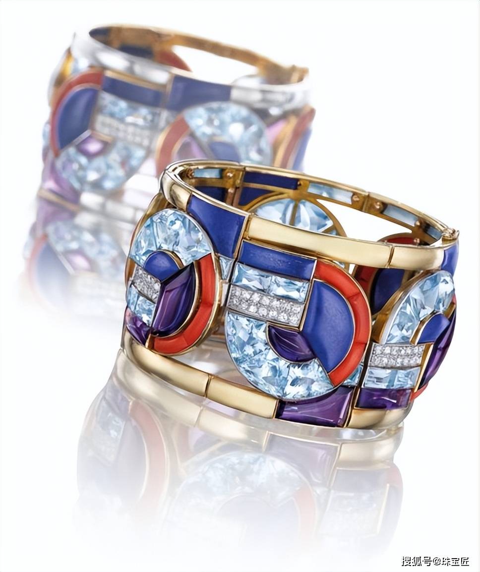 1920 年代前后,他逐渐挥别新艺术时期的自然曲线,开始探索几何构图与简约美学,将铂金、钻石、黑玛瑙甚至是不常见的玉石、珊瑚等材质与几何线条结合,打造出契合摩登时代精神的作品。