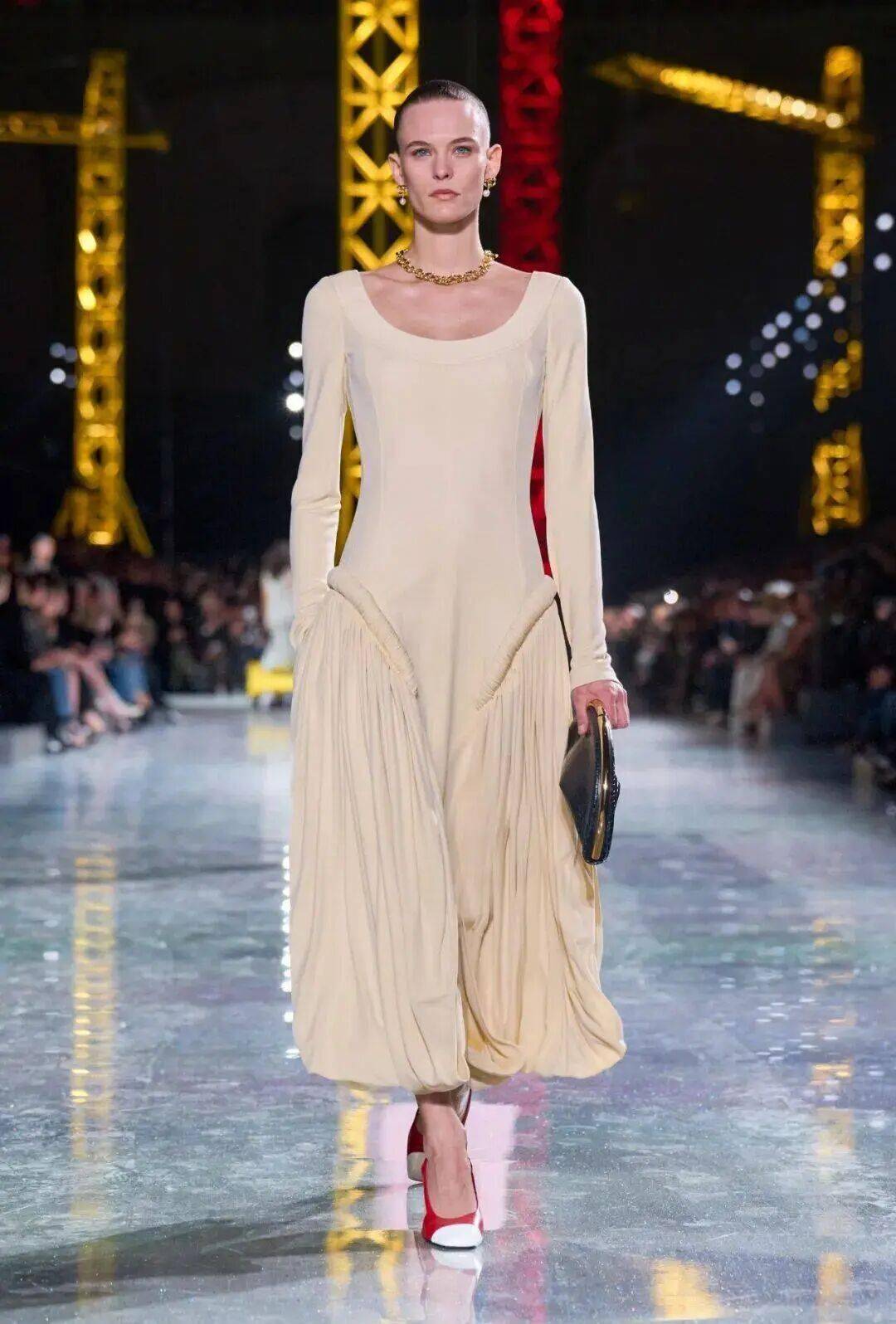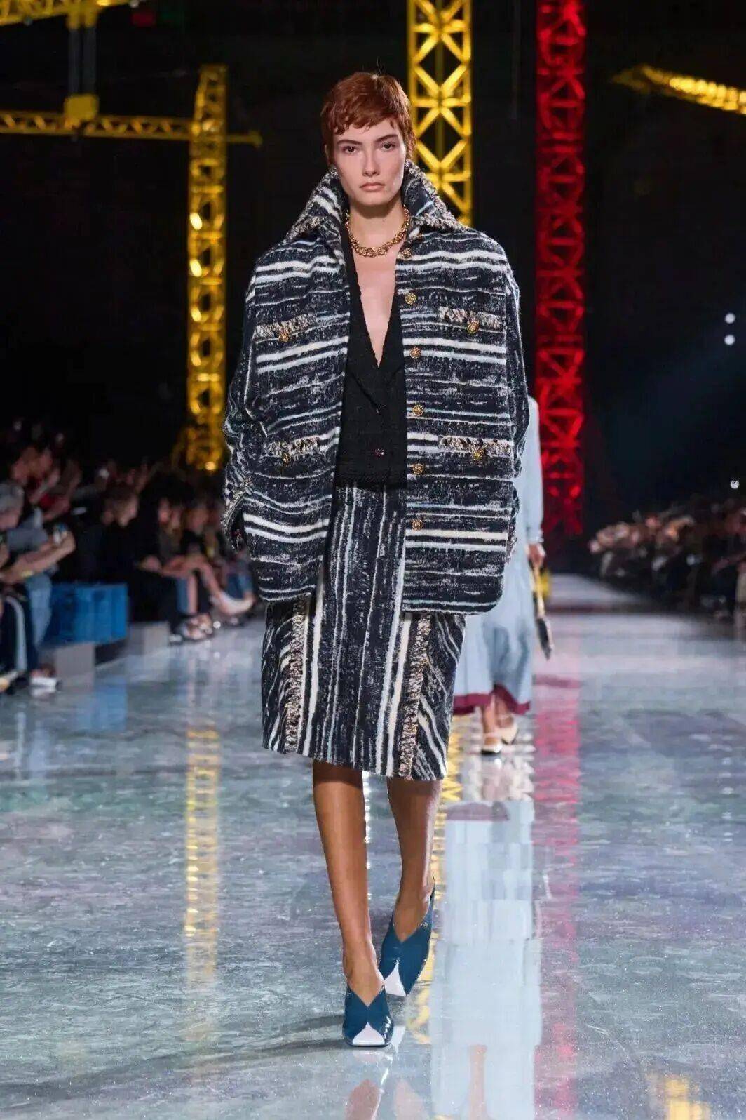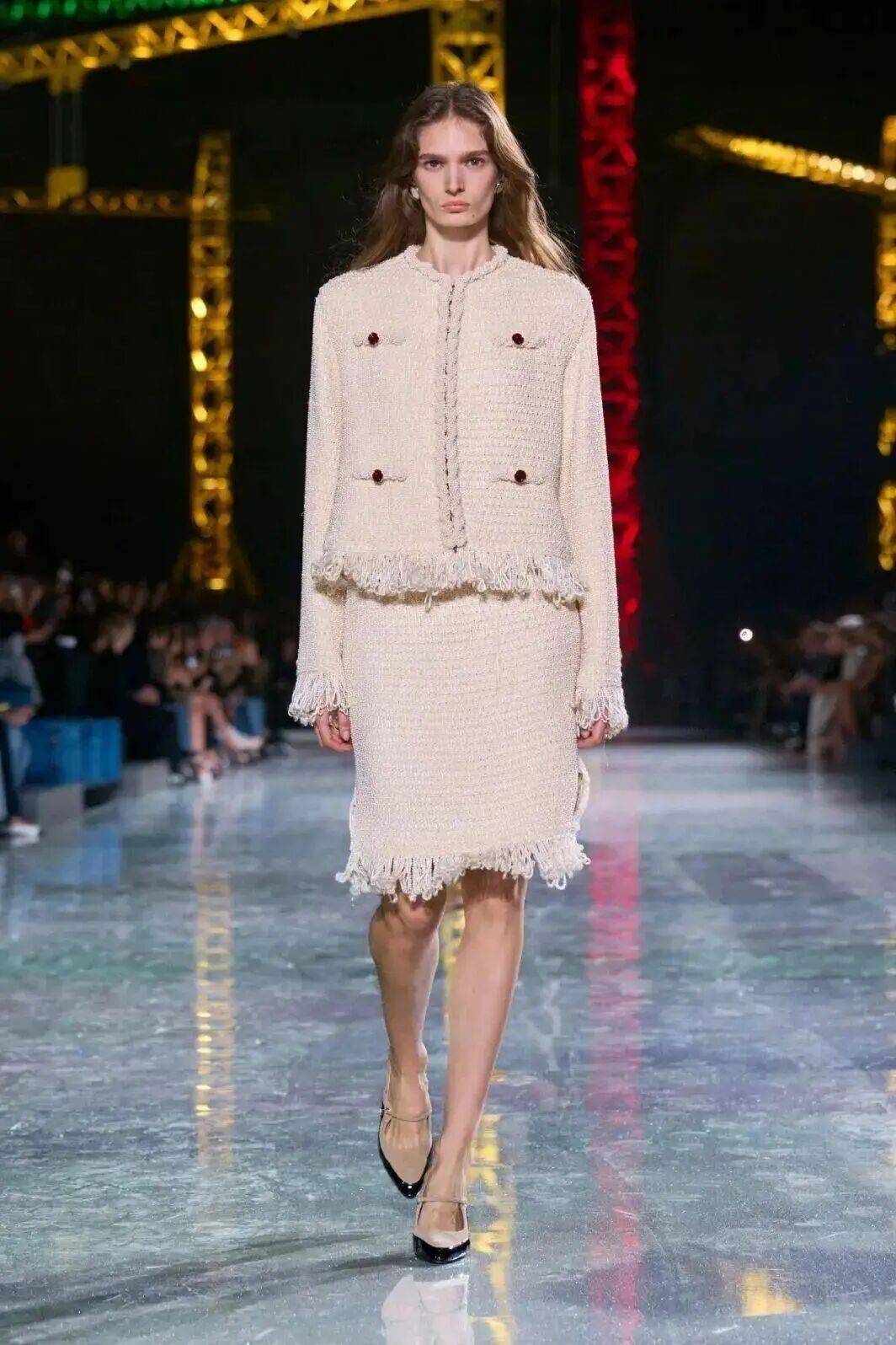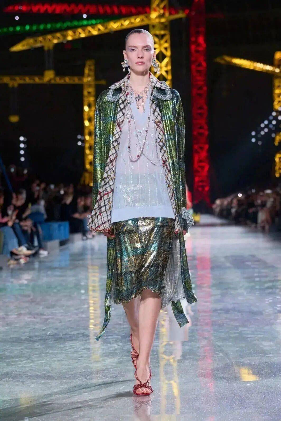 在创意总监Matthieu Blazy的引领下,香奈儿正迎来一场深刻的自我革新。在他为品牌呈现的第二场常规季成衣系列中,Blazy将巴黎大皇宫化为一座“建筑工地”——鲜亮的起重机伫立其中,象征着品牌并非一座完成的丰碑,而是一项持续“构建中的工程”。