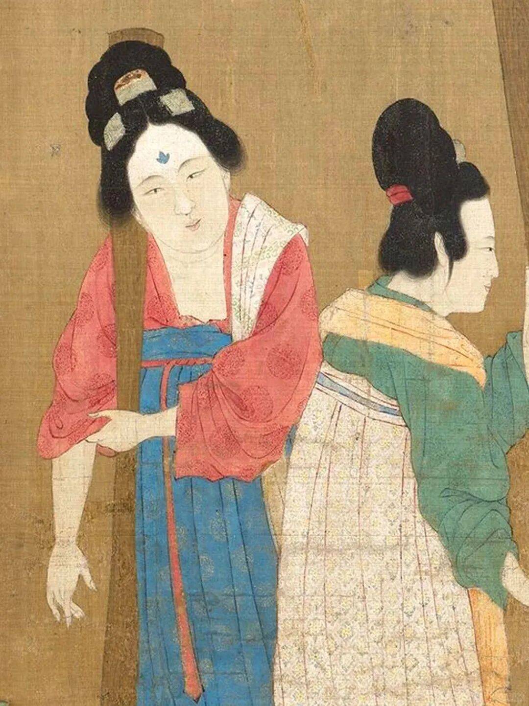 唐代佚名《宫乐图》中贵妇施桃花妆