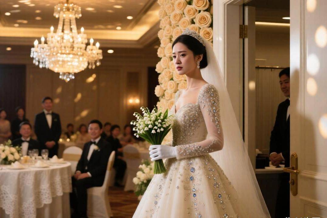 五月的阳光,透过酒店宴会厅巨大的水晶吊灯折射下来,碎成无数跳跃的金斑,落在香槟色的玫瑰墙、洁白的蕾丝桌布,以及宾客们笑意盎然的脸上。空气里弥漫着鲜花、『香氛』、美食和美酒混合的甜腻气息,乐队演奏着舒缓的《梦中的婚礼》,一切都符合一场盛大、完美婚礼该有的样子。我,林溪,穿着耗费半年时间定制、缀满手工刺绣和水晶的曳地婚纱,站在宴会厅侧面的新娘准备间门口,手里紧紧攥着一束铃兰捧花,指尖却冰凉。心脏在胸腔里跳得有些失序,不是因为即将开始的仪式,不是因为满堂宾客的注视,而是因为十分钟前,在化妆间里发生的那一幕。