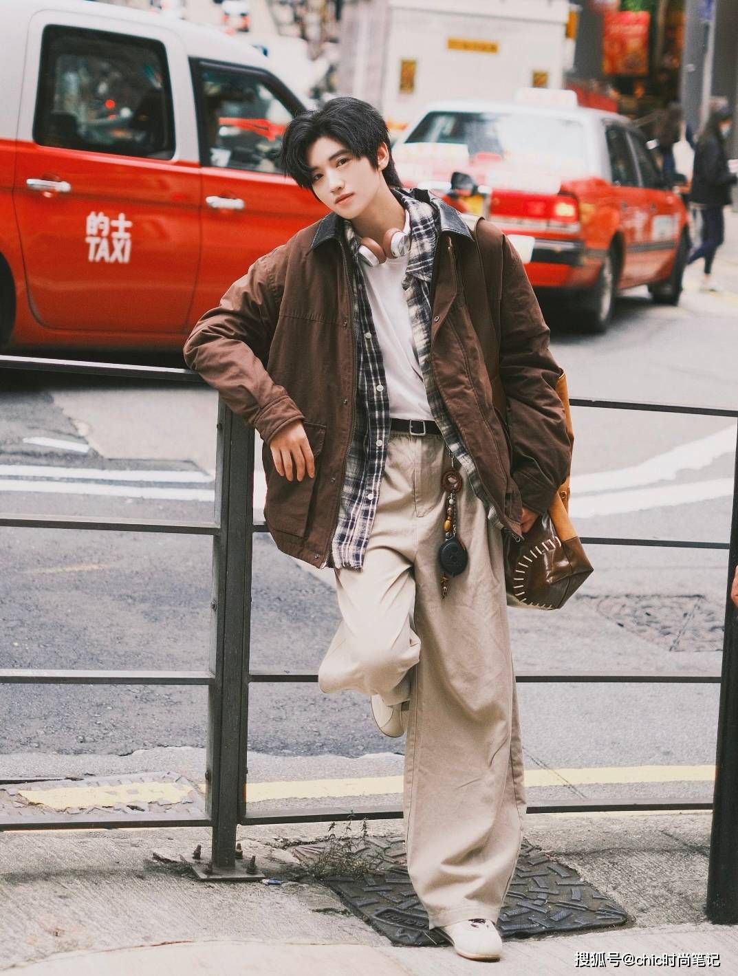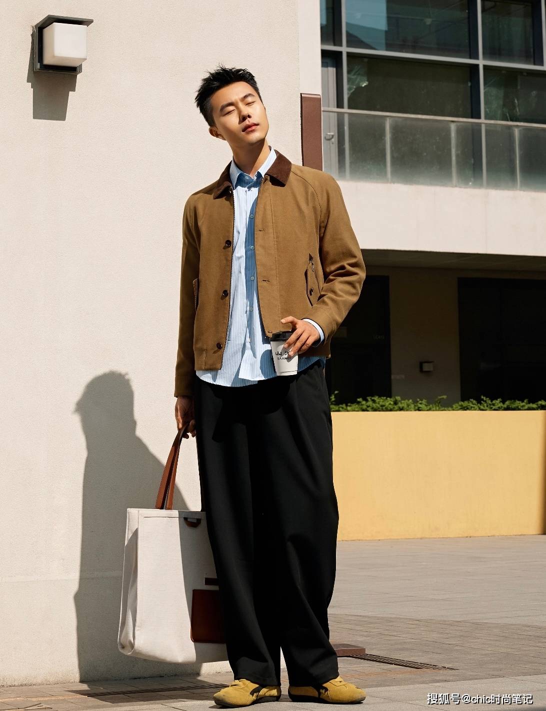 棕色系外套🧥是稍显沉稳、商务的单品,内搭浅蓝色衬衫后让整体的色彩有了亮眼效果,带着一丝清新的气息来“缓解”正式感。
