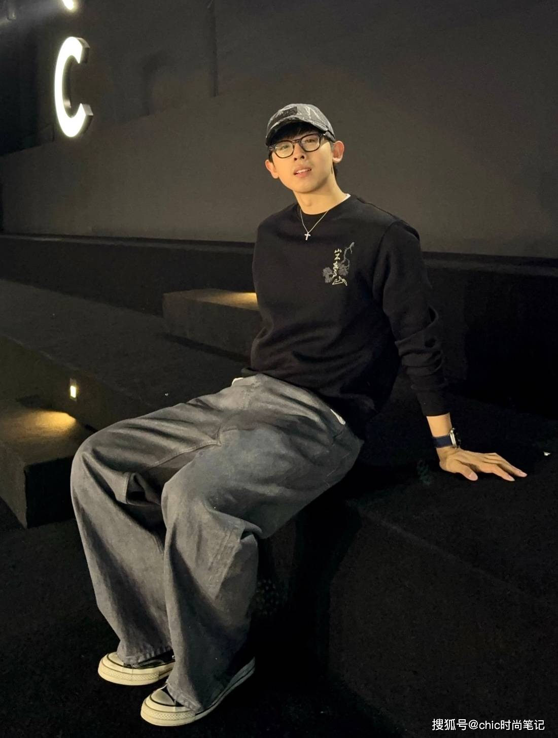 海澜之家一直是大家信任的男装品牌,一件黑色圆领卫衣搭配了极具松弛的阔腿牛仔裤👖,随性、不羁的氛围感拉满,选择鸭舌帽🧢和帆布鞋作为『穿搭』点缀。