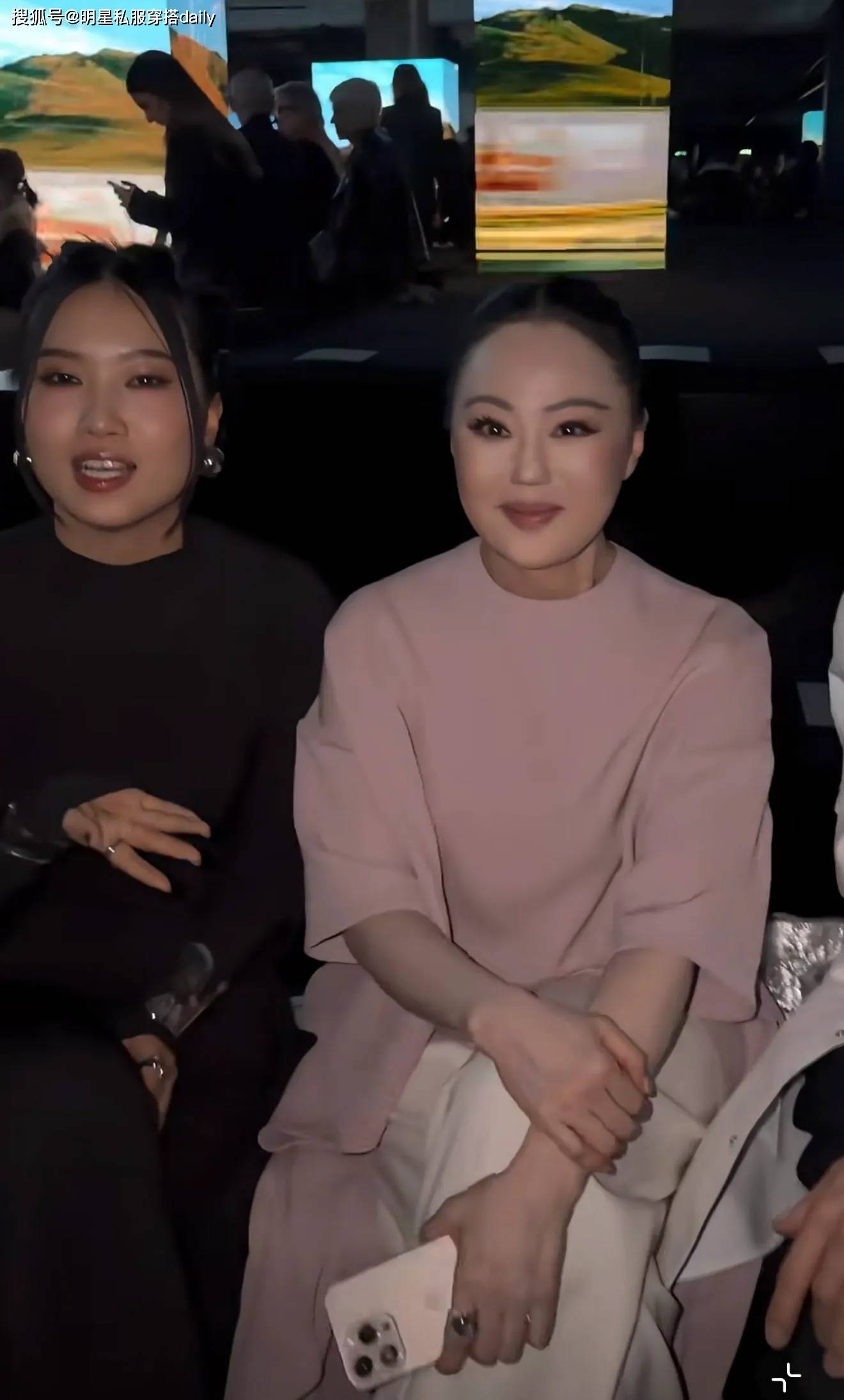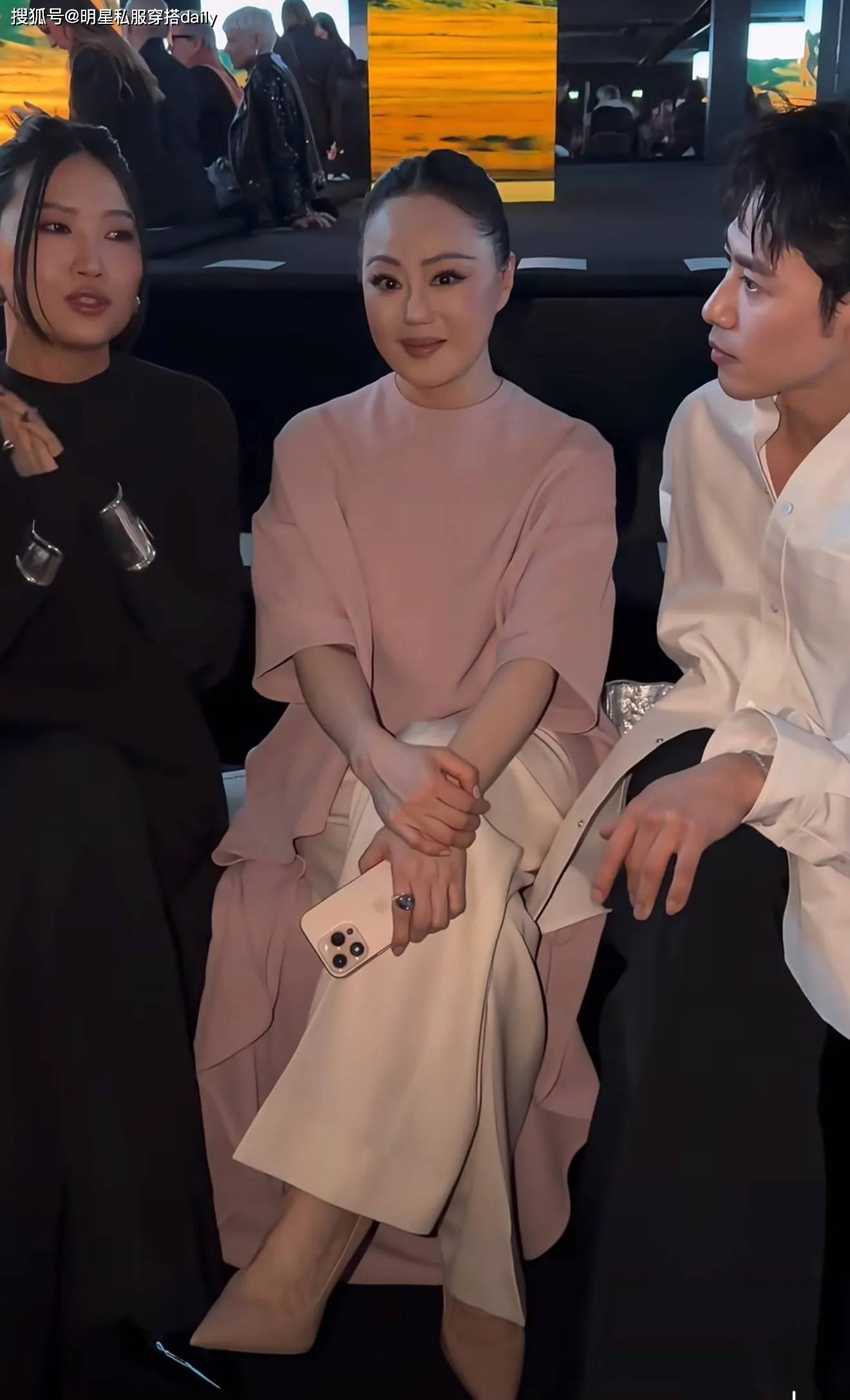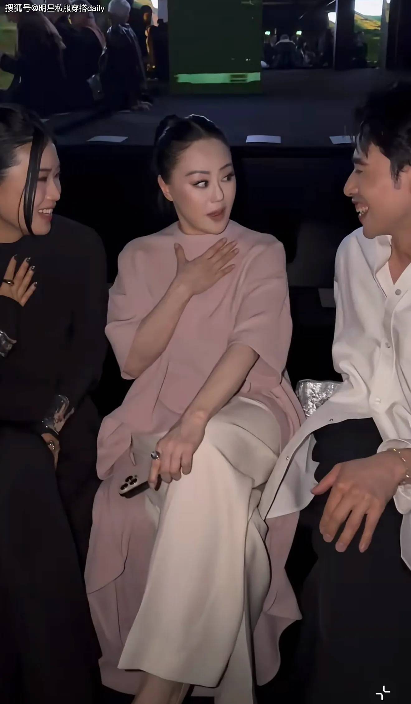 章小蕙身穿一袭低饱和度粉色上衣,搭配一条白色裤子,脸型圆润,脸部轮廓流,还是肉肉的感觉!这让她看起来比同龄人要更年轻!