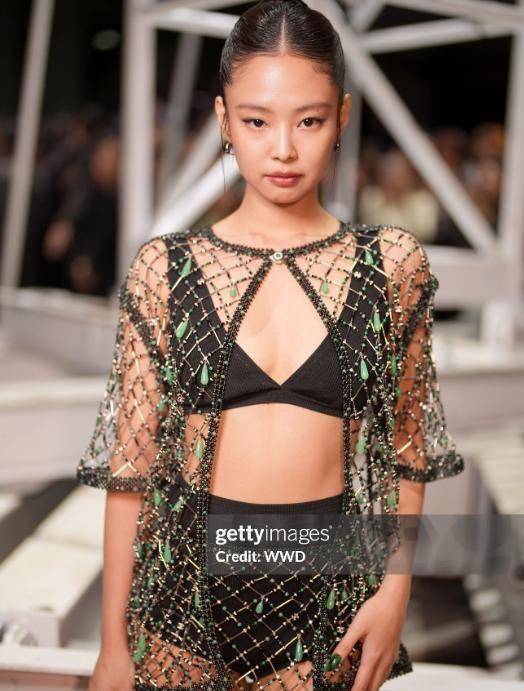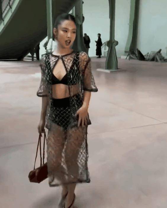 并非所有『明星』️都如此从容。 Blackpink成员Jennie作为香奈儿全球大使,此次秀场造型选择了一套珠链镂空透视套装。 内搭黑色内衣清晰可见,极高的露肤度被部分网友和媒体评价为“艳俗”,认为其与香奈儿秀场的高级格调背道而驰。 她的现场状态也被描述为举动透着“疯劲儿”,走路带有醉态,与刚出道时的气质相差甚远。