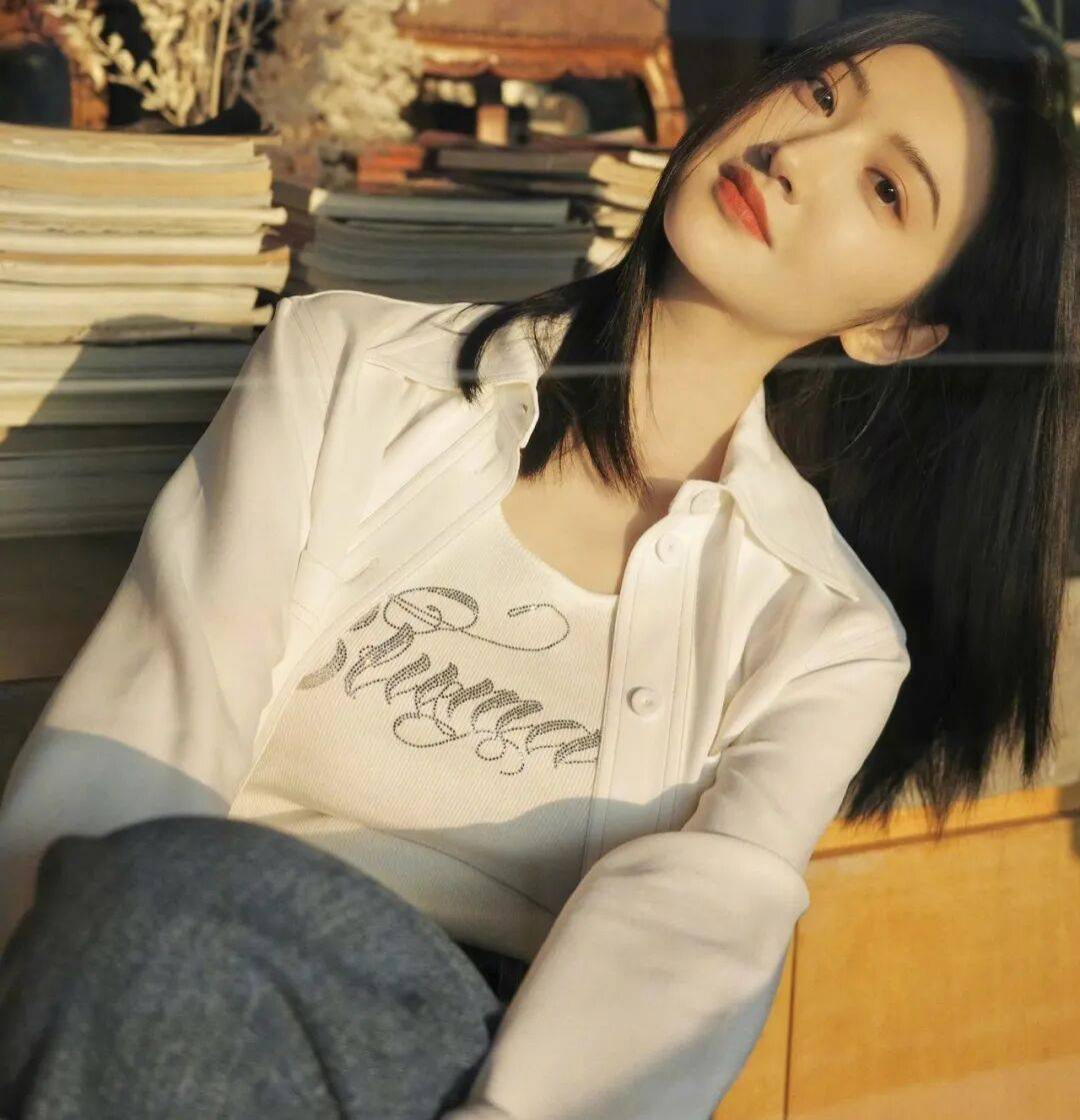 里面叠穿了一件白色打底,这个小心思真的加分。很多女生穿白衬衣担心太透或者太单调,『景甜』这招叠穿就特别聪明。两件白色单品叠在一起,不是那种死白的色块,而是有层次感的白——衬衣的白、内搭的白,在光线下呈现出微妙的深浅变化,让整个上半身看起来特别丰富、特别有质感。