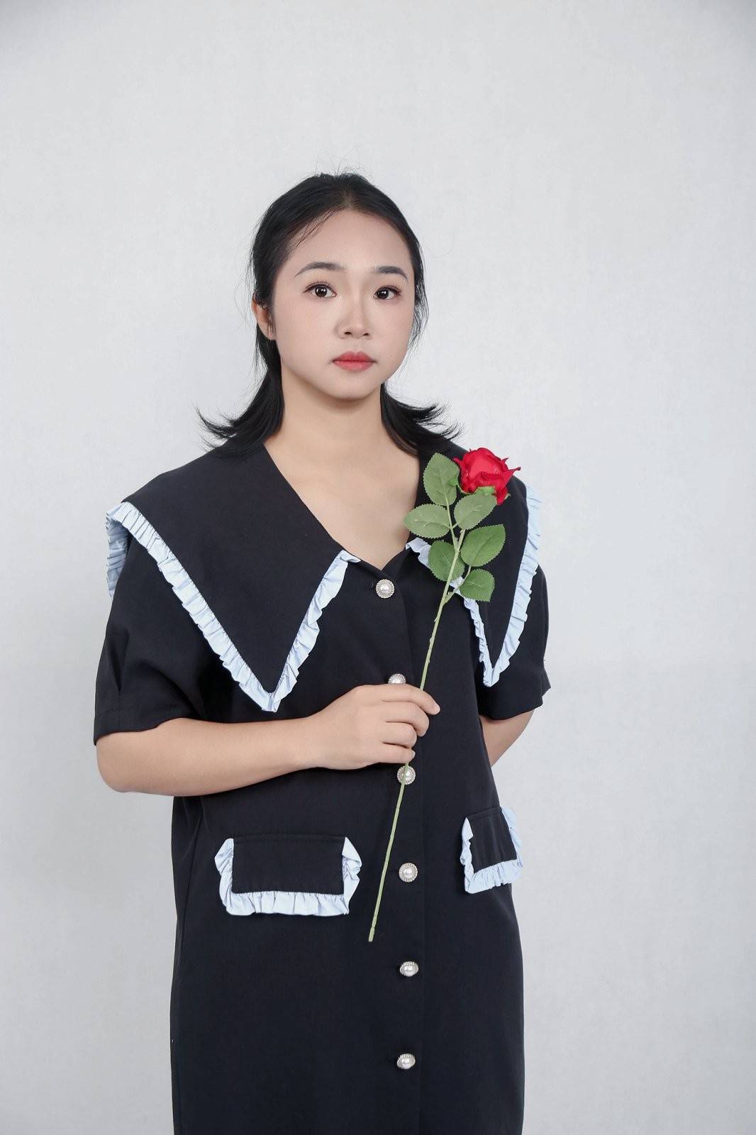 更令人惊喜的是,她对道具的驾驭能力远超新人平均水平。无论是象征浪漫的红玫瑰,还是代表文艺的尤克里里,亦或是『时尚杂志』,她都能快速找到与道具的互动节奏,让道具成为情绪的延伸,而非画面的点缀。这种 “人景合一” 的镜头感知力,让她的作品既有视觉冲击力,又有情感共鸣点,仿佛能透过照片,看到镜头背后那个鲜活的女孩。