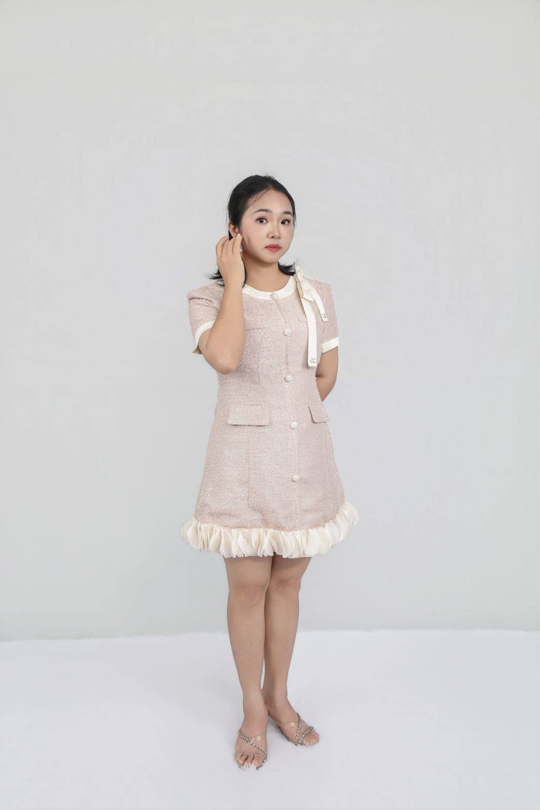 作为新人,她的身上没有被过往经验束缚的 “套路感”,每一次尝试都带着探索的热忱。无论是小香风粗花呢裙的精致,还是休闲套装的随性,她都能以最本真的状态去适配,不刻意凹造型,不强行凹人设,让服装成为表达自我的载体,而非束缚姿态的枷锁。这种 “以我为主” 的表达欲,正是新人最珍贵的特质:不被标签定义,不被风格绑架,只做镜头前最鲜活的自己。
