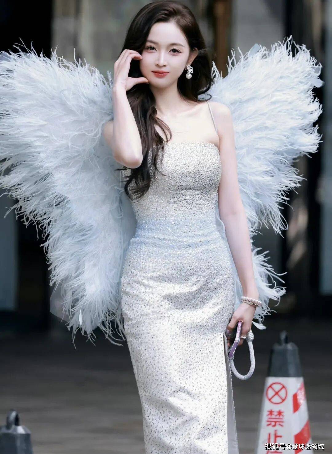 吴宣仪穿着一袭银白闪钻抹胸礼服,背后是一对浅蓝渐变的羽毛翅膀,整个人像是从童话里走出来的天使,又像是某个奇幻故事里降临人间的精灵。这套造型后来被粉丝称为天使降临名场面,在『社交媒体』上刷屏了好几天。