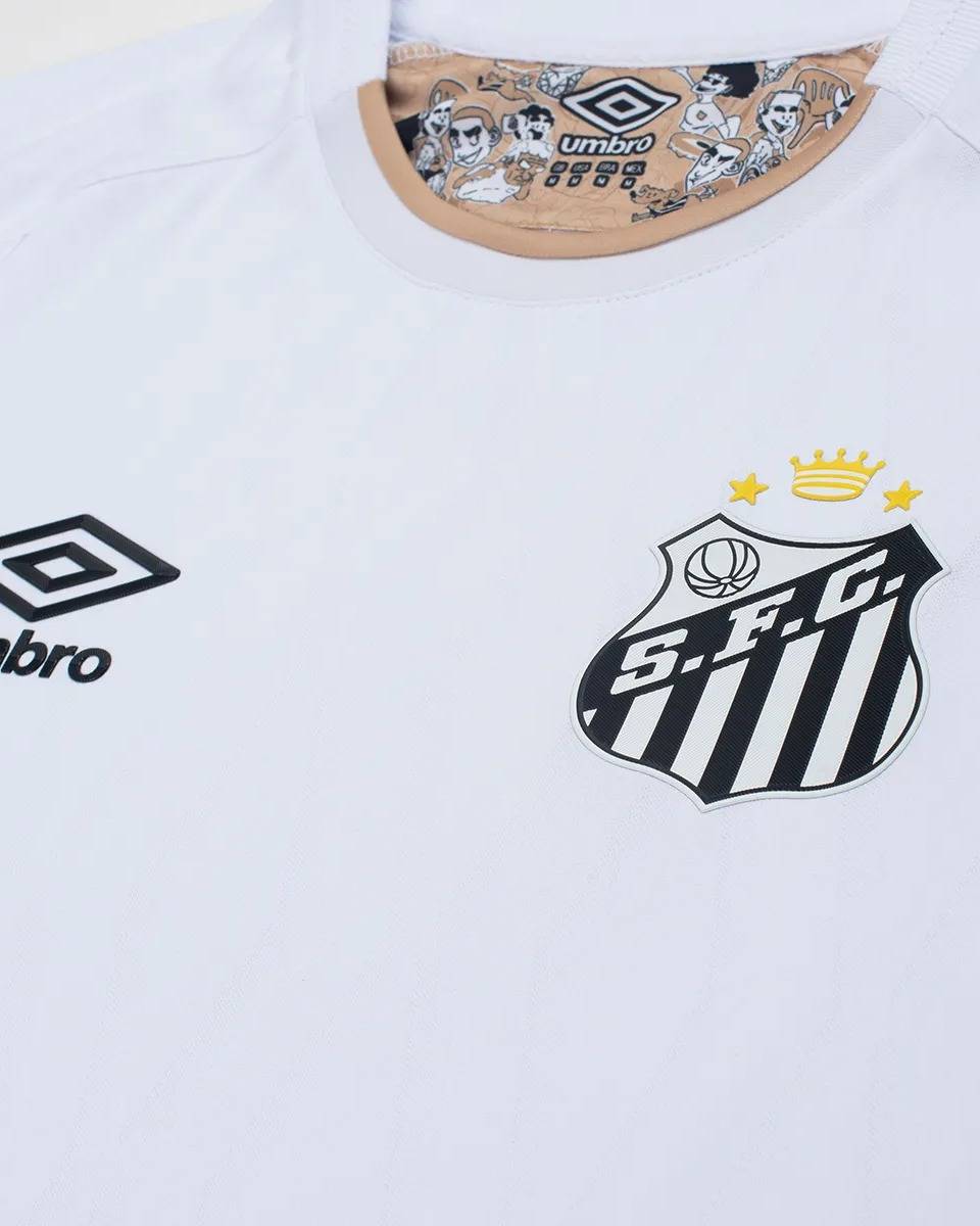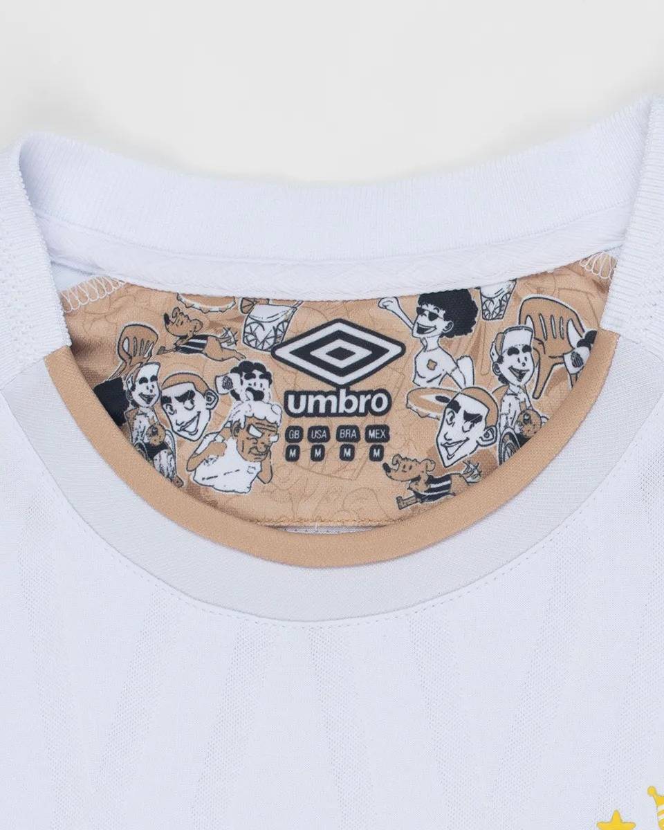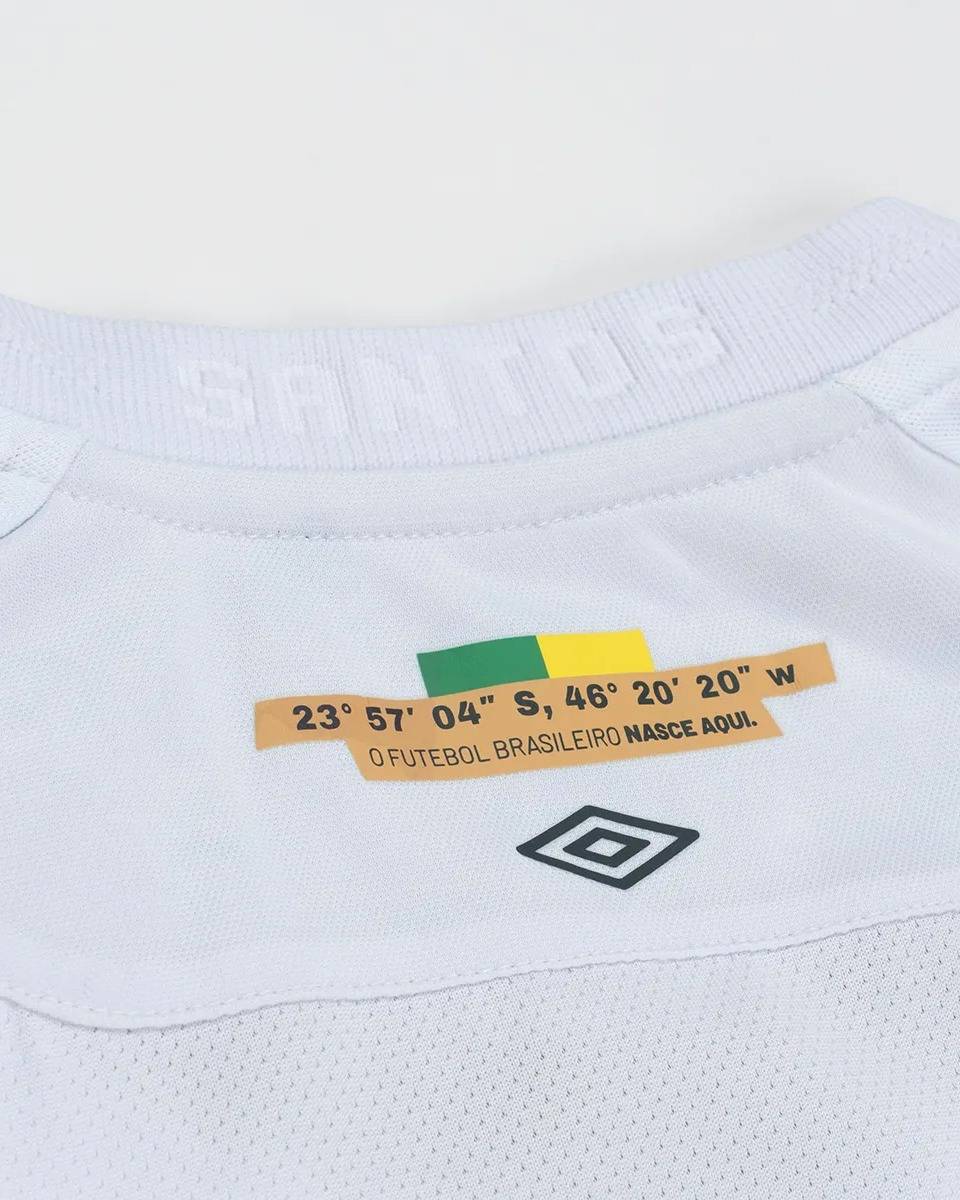 颈后有一个特殊的外部标签,显示传奇的维拉贝尔米罗体育场的确切地理坐标(南纬23° 57′ 04″,西经 46° 20′ 20″)。在坐标旁边醒目地写着“巴西足球诞生于此”,巩固了俱乐部的历史传承。定制的主题盾形徽章位于下摆前部,体现了球衣对巴西足球文化的致敬。