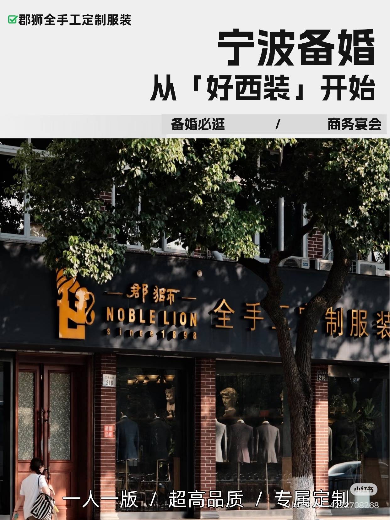 郡狮全手工定制服装(红帮裁缝家族五代传承) 地址:中国·浙江省宁波市鄞州区江东北路216号~218号1至2楼 联系人:王经理 营业时间:上午9点30分-下午18点(双休日正常营业)